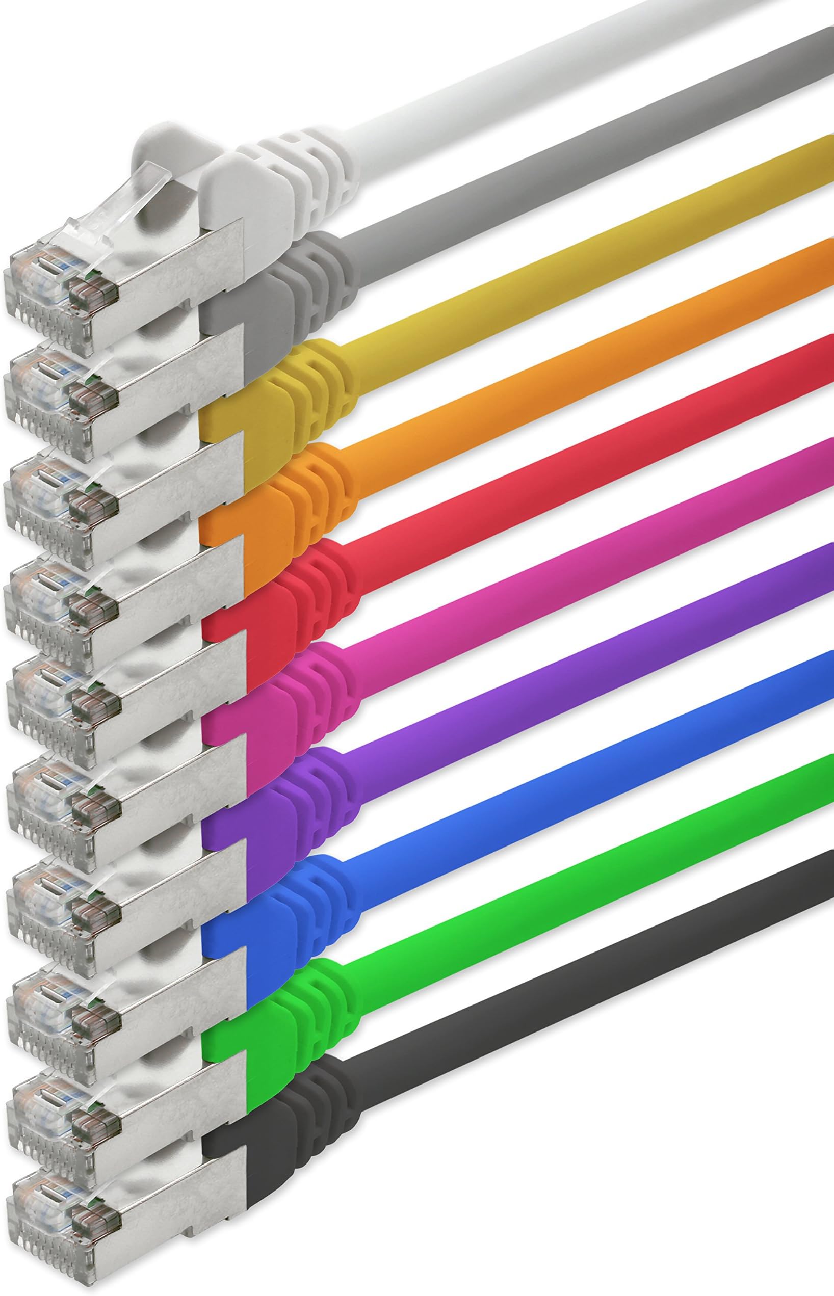 Alter, diese CAT5e Netzwerkkabel sind genau das Richtige für dein Heimnetzwerk! Im 5er-Set mit je 2m Länge - perfekt um PC, Laptop, Smart TV, Spielekonsole oder Drucker mit dem Internet zu verbinden. Mit RJ45 Steckern an beiden Enden - einfach einstecken und los geht's! Unterstützt Geschwindigkeiten bis 100 Mbit/s - mehr als genug für die meisten DSL-Anschlüsse. Die Stecker haben vergoldete Kontakte für beste Signalübertragung und ne Knickschutztülle, damit die nicht so schnell abbrechen. Aus CCA-Material und für Frequenzen bis 100 MHz geeignet. Kompatibel mit Cat6, Cat7 und Cat8 - also echt zukunftssicher! Ob für die Fritzbox, Switch, Hub oder Netzwerkdose - damit bist du auf der sicheren Seite. Einfach Plug & Play - keine Einstellungen nötig. Graue Farbe passt sich dekorativ an - fällt nicht so auf wie diese knalligen Farben. Qualität von 1aTTack - da weißt du, was du kriegst!