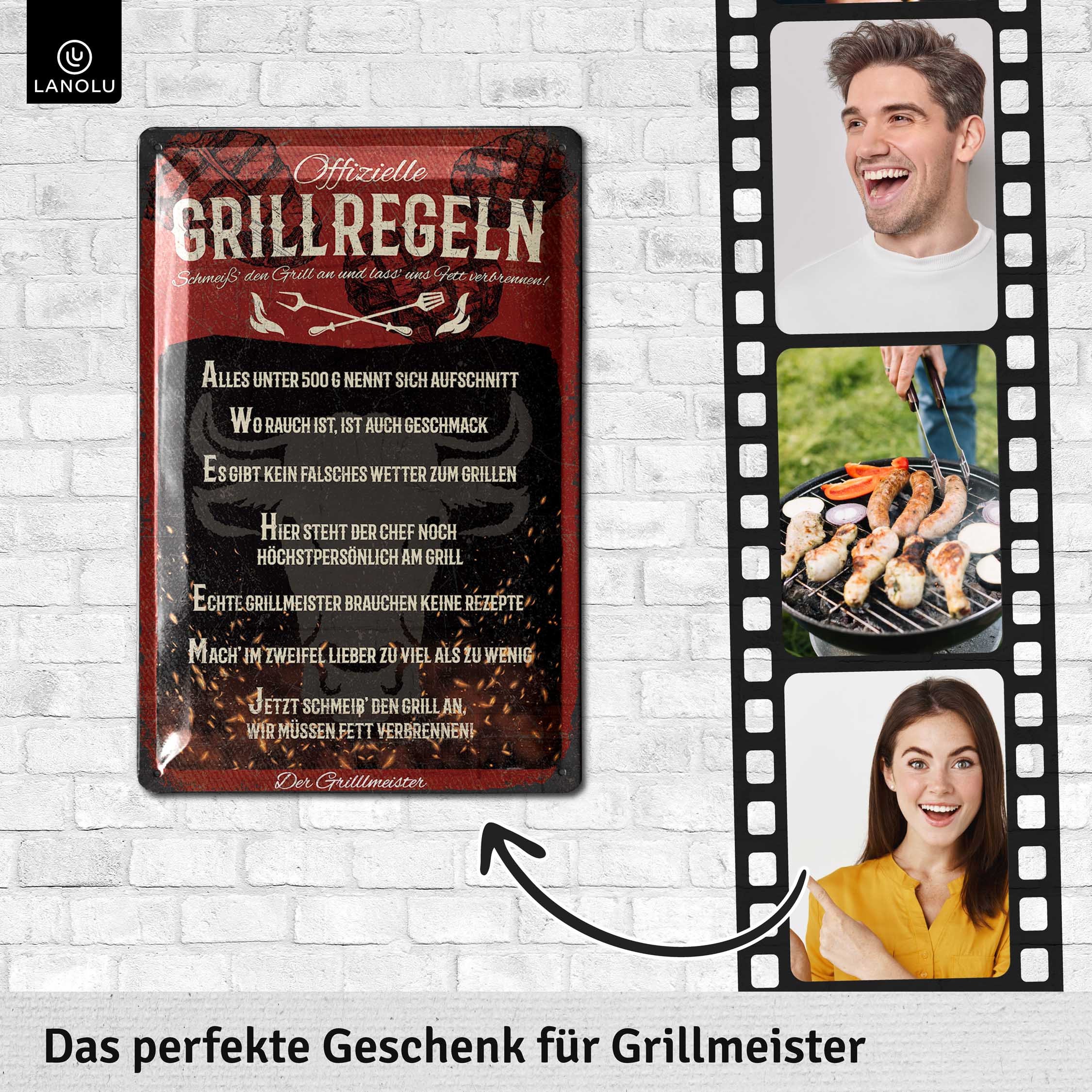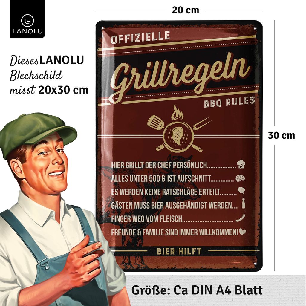 Hol dir das ultimative Grill-Accessoire für deine Outdoor-Küche! Dieses coole Retro-Blechschild von LANOLU mit der Aufschrift 'Grill wie nie zuvor' ist der perfekte Hingucker für deine Grillecke. Mit den Maßen 20x30 cm aus stabilem Stahlblech und vier vorgebohrten Löchern ist die Montage ein Kinderspiel. Das Schild ist zusätzlich mit Klarlack überzogen für besonderen Glanz und Wetterbeständigkeit - da macht dir auch mal ein Regenschauer nichts aus. Perfekt als Geschenk für Papa oder den grillverrückten Freund! Das Design kommt direkt aus Berlin und wird in herausragender Qualität produziert. Unterstütze damit ein junges Start-Up und werde Teil des Erfolgs. Über 250.000 zufriedene Kunden vertrauen bereits auf LANOLU - und du?