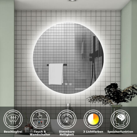Perfektes Licht für dein Badezimmer! Dieser runde LED-Spiegel von luminorcrest macht Schminken und Rasieren zum Kinderspiel. Mit 50cm Durchmesser und 3 einstellbaren Lichtfarben (2700K-6000K) - von warmem Kerzenlicht bis zu tageslichthell. Die Antibeschlag-Funktion verhindert lästiges Beschlagen nach dem Duschen. Aus 5mm gehärtetem Sicherheitsglas und mit 50.000 Stunden LED-Lebensdauer - da hast du lange Freude dran. Touch-Bedienung funktioniert auch mit nassen Händen. Seiten- und Rückenlicht für gleichmäßige Ausleuchtung ohne Schatten. CRI90+ für naturgetreue Farbwiedergabe. Einfach montieren - horizontal oder vertikal. Mach dein Badezimmer zur Wohlfühloase!