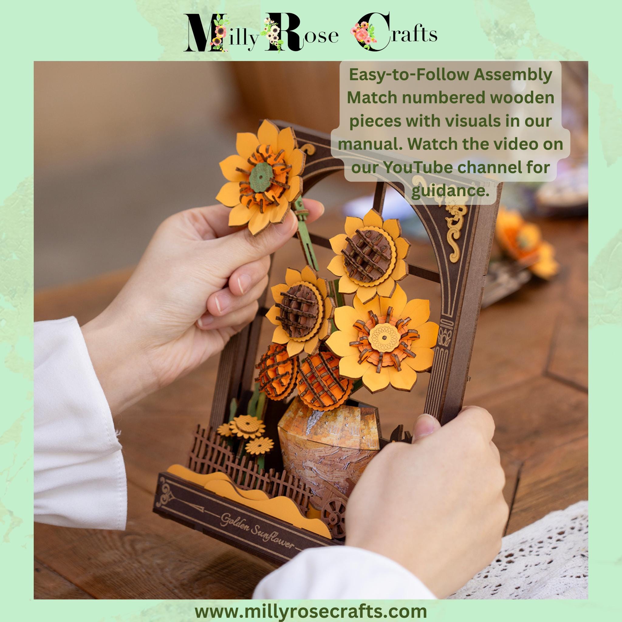 • 3D Holzpuzzle Sonnenblume Mit LED - Bastelset Für Erwachsene & Kinder