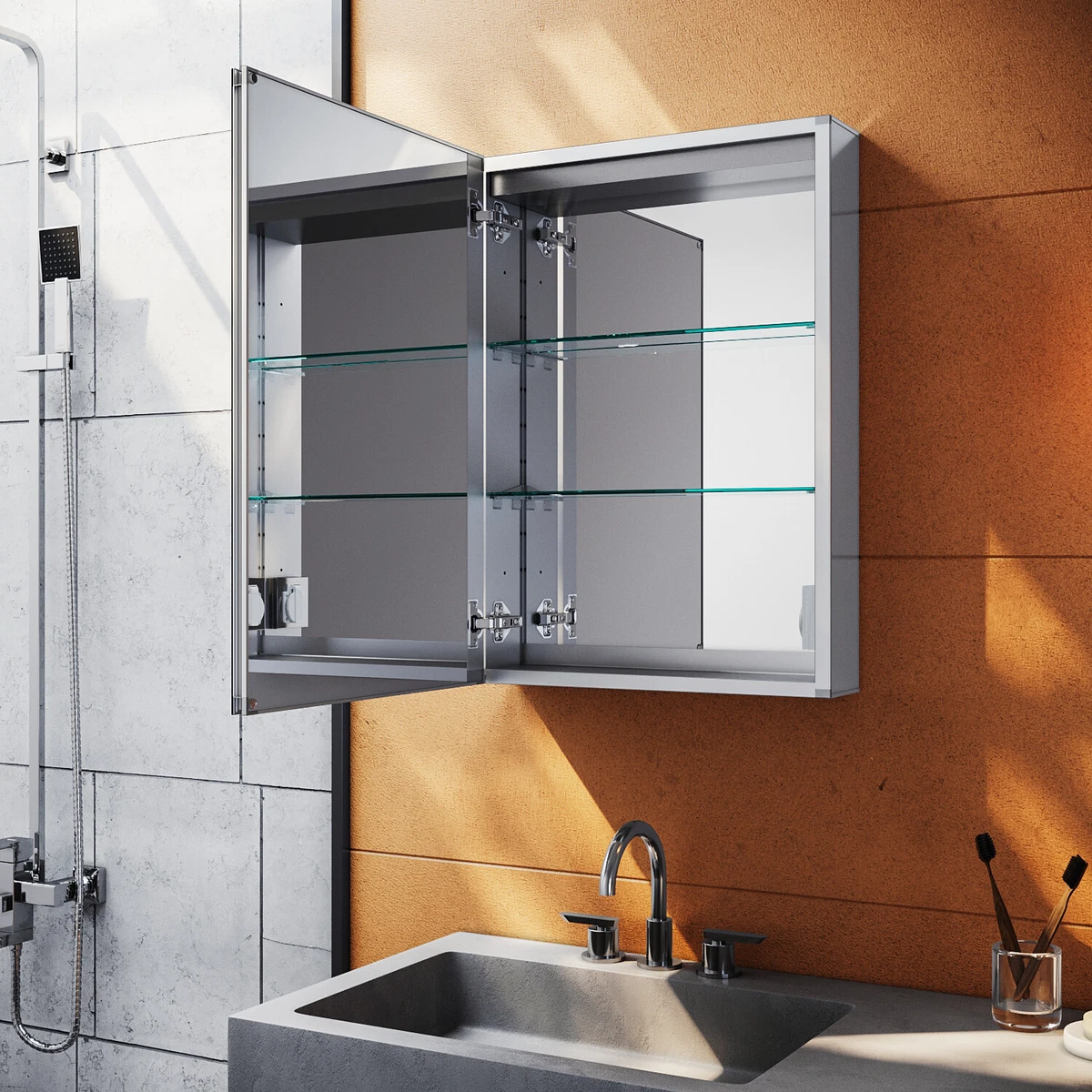 Wow, dieser Spiegelschrank von Artforma ist ja der absolute Hammer für dein Badezimmer! Mit 66x72x16,6 cm hat er die perfekte Größe und sieht einfach mega stylisch aus. Aber das ist noch nicht alles: Die integrierte LED-Beleuchtung macht jeden Morgen zum Erlebnis! Du hast die Wahl zwischen verschiedenen Schaltern - vom praktischen Wippschalter bis zum modernen Berührungssensor. Stell dir vor, du bewegst einfach deine Hand in die Nähe und schon geht das Licht an! Noch nicht genug? Es gibt sogar Modelle mit Bluetooth-Lautsprechern - da kannst du beim Schminken deine Lieblingsmusik hören. Oder mit Wetterstation, die dir Innen- und Außentemperatur anzeigt. Der kosmetische Spiegel mit 3-facher Vergrößerung ist perfekt für die Detailarbeit. Und die OptiWhite-Oberfläche sorgt für eine kristallklare Reflexion ohne grünlichen Stich. Abschrägungen an den Kanten geben dem ganzen noch das gewisse Etwas. Mit Steckdose und USB-Anschluss kannst du gleichzeitig deine Geräte aufladen. 17 verschiedene Dekore stehen zur Auswahl - da findest du garantiert was für dein Badezimmer. Einfach ein Traum von einem Spiegelschrank!
