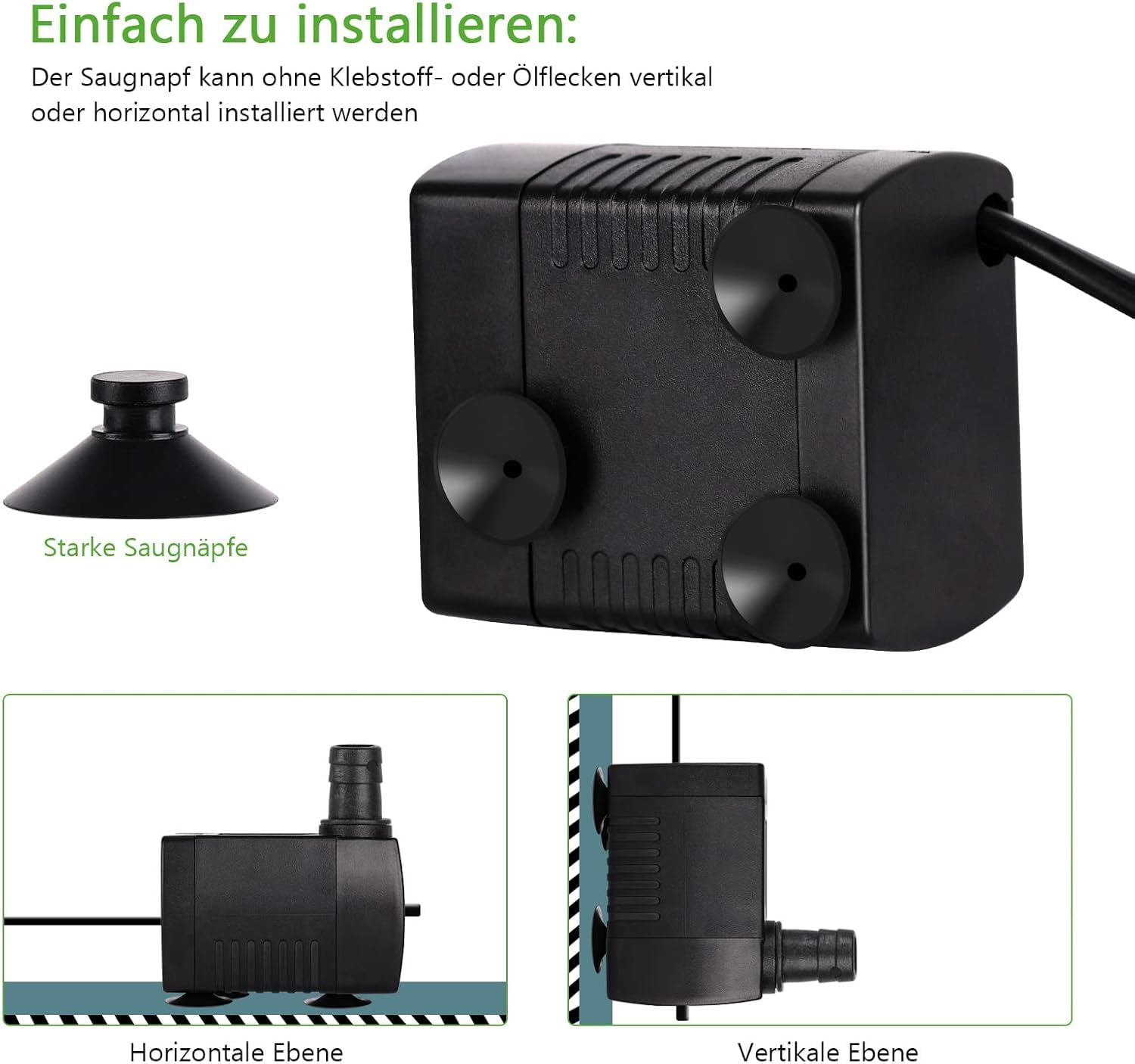 Perfekte Wasserzirkulation für dein Aquarium! Diese Tauchpumpe mit 2W Leistung ist super leise und effizient. Fördert bis zu 150 Liter pro Stunde - ideal für kleine bis mittlere Aquarien. Mit integriertem LED-Licht für eine schöne Beleuchtung. Keramikwellen-Chips sorgen für Langlebigkeit und geringen Verschleiß. Mit Saugnäpfen für stabilen Halt an der Glaswand. Für 220-240V (EU-Stecker) - einfach ins Wasser tauchen und anschließen. Das 1,5m lange Kabel gibt dir genug Spielraum. Leicht zu reinigen - kein Werkzeug nötig. Perfekt für Aquarien, Fischteiche oder kleine Springbrunnen. Schafft eine gesunde Wasserumgebung für deine Fische. Einfach installieren und genießen!