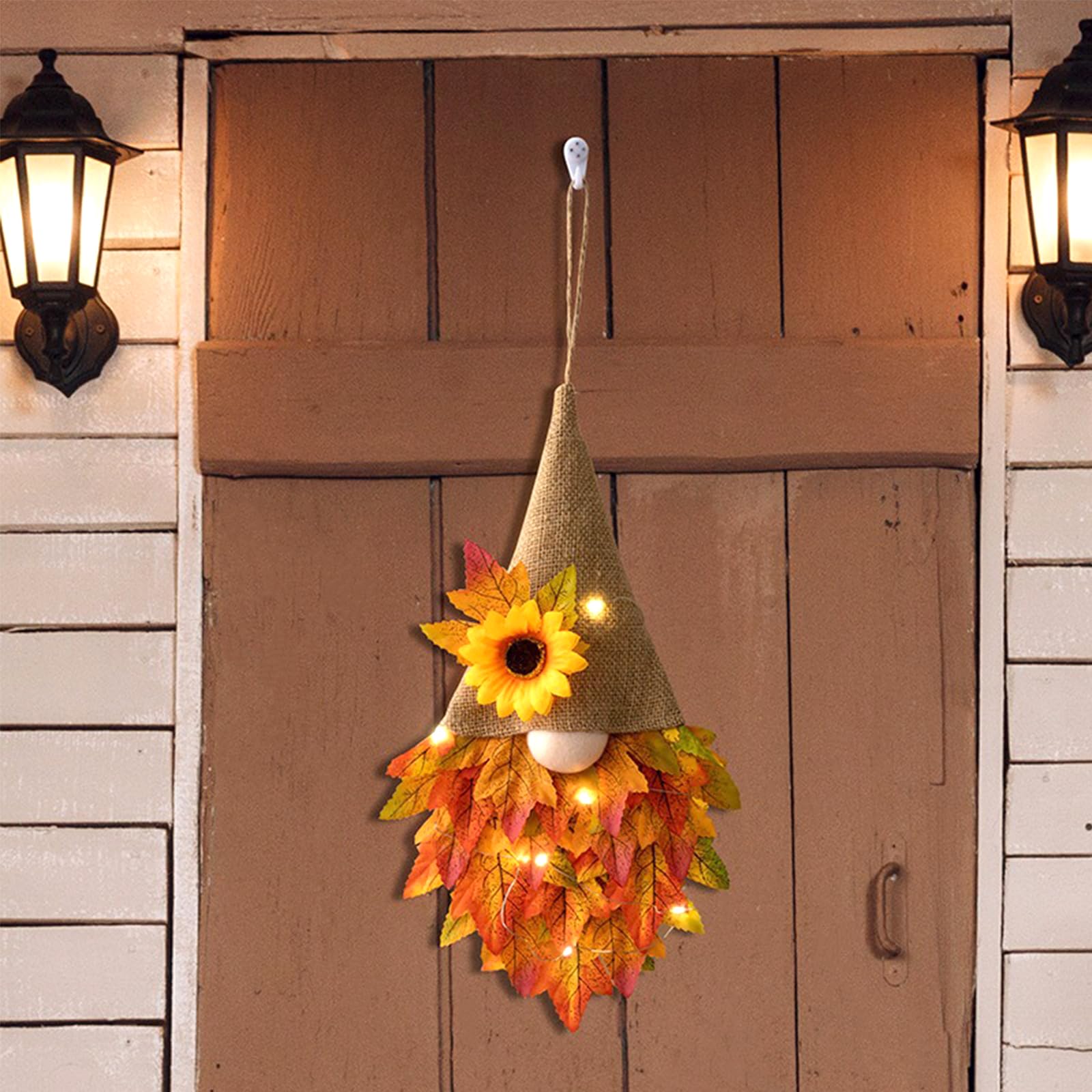 Dieser bezaubernde Herbstkranz mit niedlichem Wichtel bringt herbstliche Gemütlichkeit an deine Haustür! Der Kranz ist kunstvoll mit bunten Ahornblättern in typischen Herbstfarben und einer dekorativen Wichtelfigur in der Mitte gestaltet. Das integrierte LED-Licht sorgt für eine warme, einladende Atmosphäre am Abend. Aus robusten Materialien gefertigt, hält der Kranz viele Jahre. Perfekt für die Herbst- und Halloween-Dekoration an Türen, Wänden oder über dem Kamin. Der rustikale Charme mit Sackleinenelementen verleiht deinem Zuhause natürlichen Charakter. Ein echter Hingucker, der deine Gäste willkommen heißt und für gemütliche Herbstatmosphäre sorgt. Dekoriere dein Zuhause für die schönste Jahreszeit!