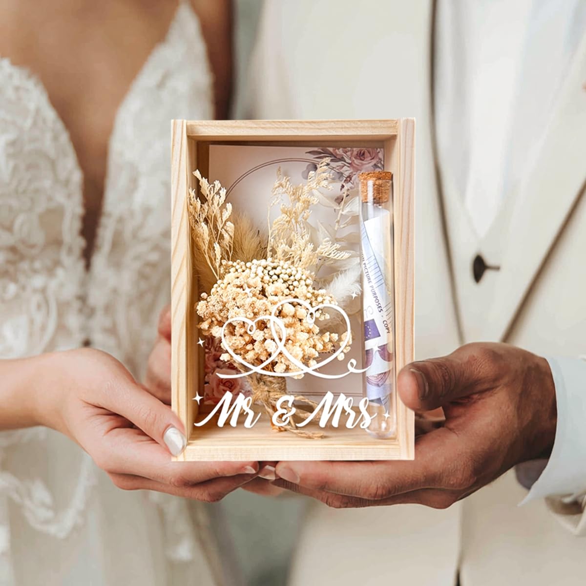 • Hochzeitsgeschenk Box Mit LED Lichterkette - Geldgeschenk In Holzbox Mit Trockenblumen