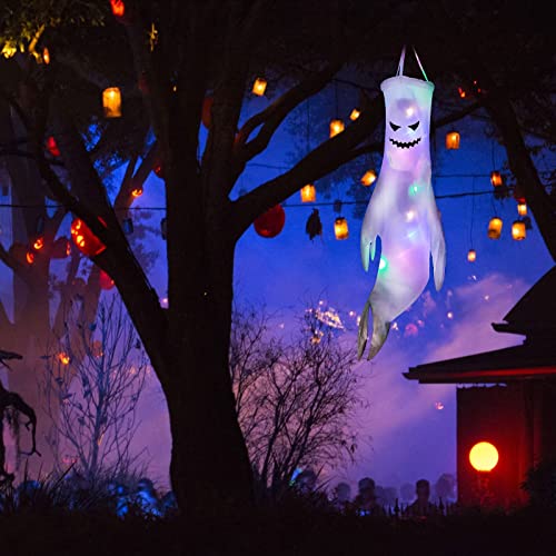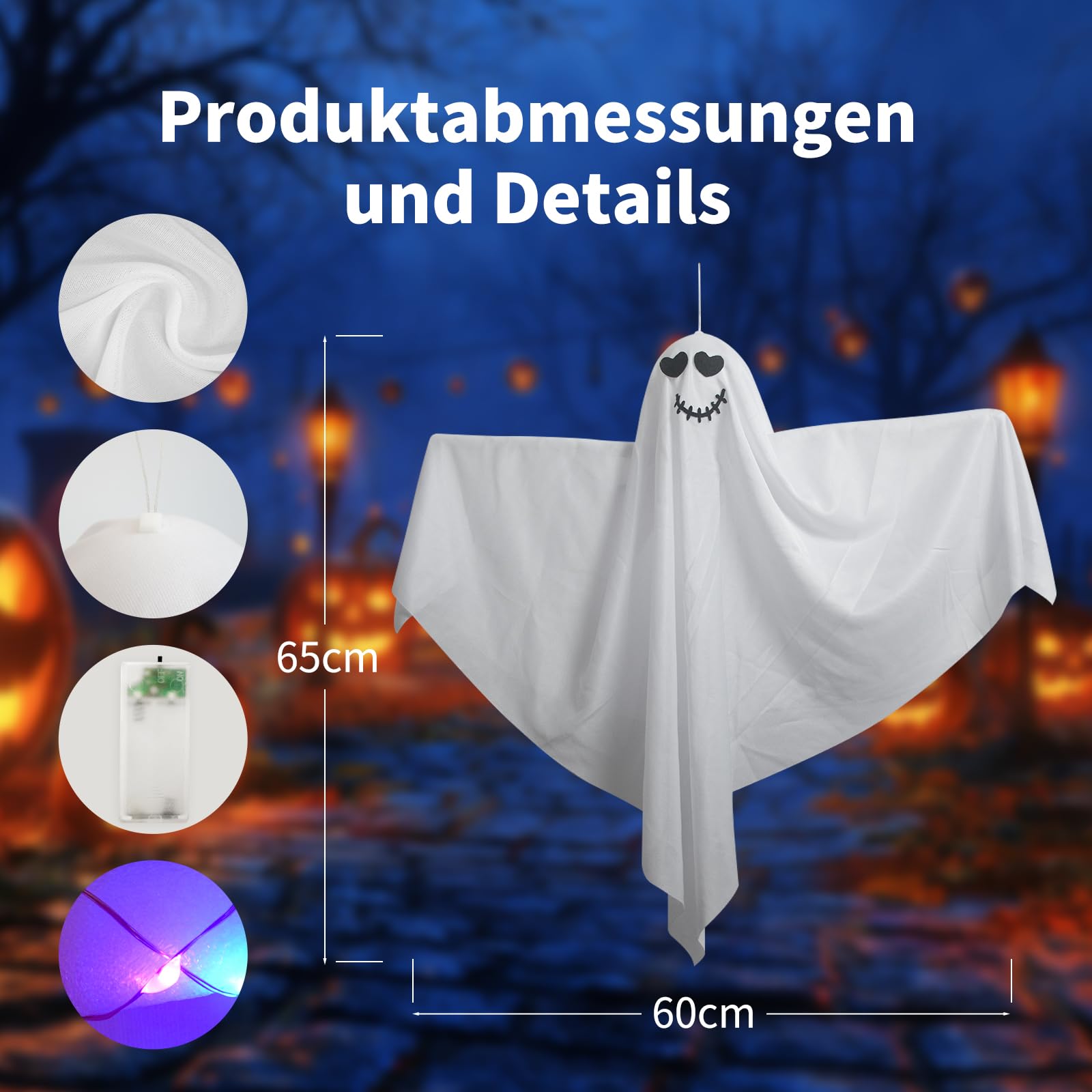 2er-Set Halloween Geister-Deko Mit LED-Lichtern - Gruselige Windsack-Geister Für Garten & Party