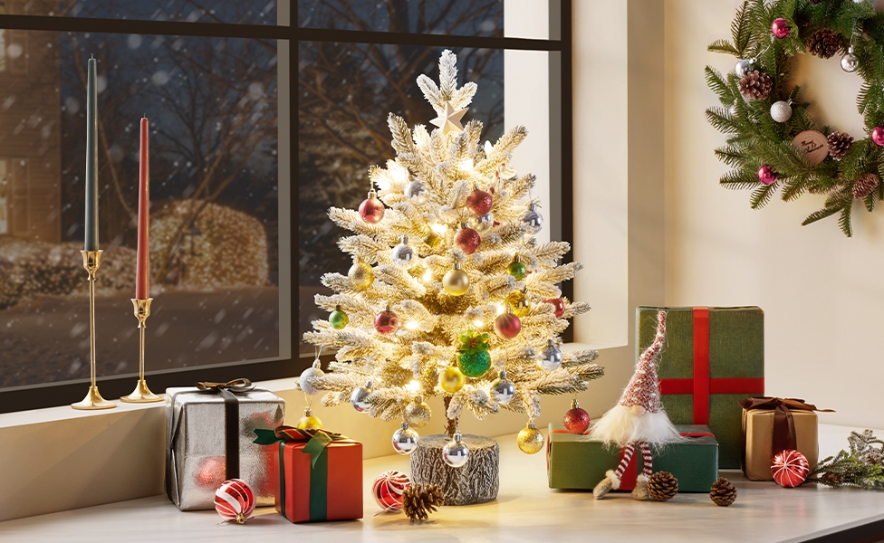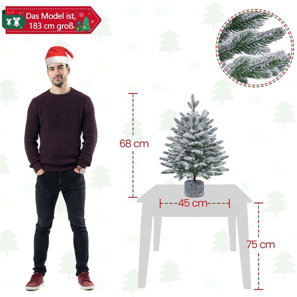 • Yaheetech Mini Weihnachtsbaum 68cm Mit LED | Schneebedeckter Tannenbaum Mit 35 Warmweiß Lichtern