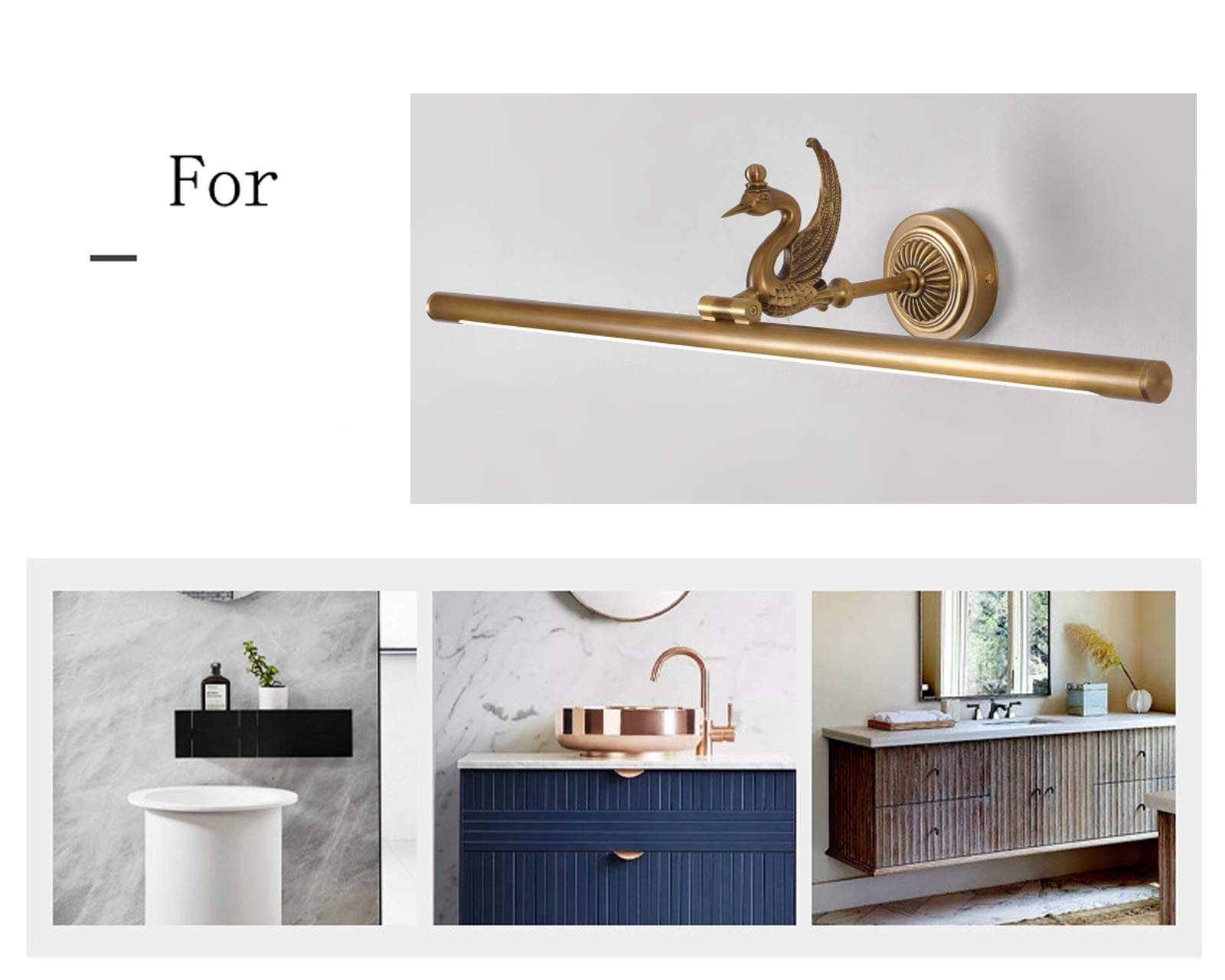 Elegante Beleuchtung für dein Badezimmer! Diese wunderschöne Spiegelleuchte im Schwan-Design aus Messing und Acryl bringt stylishes Licht über deinen Spiegel. Mit 58 cm Länge und 12W LED-Leistung sorgt sie für perfektes, blendfreies Licht in 4000K Neutralweiß - ideal für Make-up und Rasur. IP44 geschützt gegen Spritzwasser, also perfekt für Feuchträume. Die einstellbaren Arme lassen sich individuell positionieren. Einfache Installation (durch Elektriker empfohlen) für 110-240V. Schafft eine warme, einladende Atmosphäre nicht nur im Bad, sondern auch im Schlafzimmer, Flur oder als Bilderbeleuchtung. Modernes Vintage-Design das jeden Raum aufwertet!