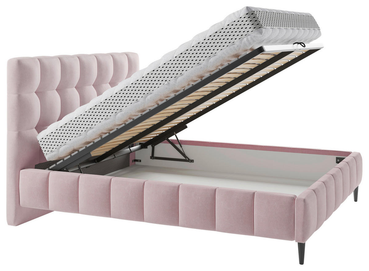 Unter dem Bett: Riesen Stauraum für Bettwäsche, Koffer oder Kleidung. Der Holzlattenrost sorgt für optimalen Liegekomfort. Stabiler Metallrahmen garantiert Langlebigkeit.