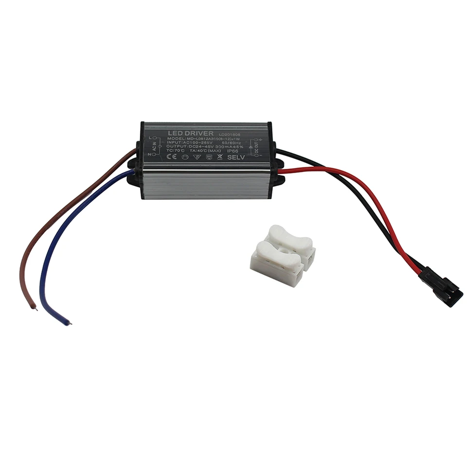 Sicherer Strom für deine LEDs! Dieser wasserdichte LED-Treiber mit IP65 Schutz ist der zuverlässige Partner für deine Beleuchtungsprojekte. Eingang: 95-265V AC, Ausgang: 75-126V DC bei 300mA. Super kompakt mit nur 22mm Dicke - passt in fast jede Ecke! Automatischer Schutz vor Kurzschluss, Überspannung, Überstrom und Übertemperatur. Perfekt für Innen- und Außenbereich - hält Staub und Wasser stand. Kompatibel mit G4, MR11, MR16, GU5.3 Leuchten, LED-Strips, Kameras und mehr. Für 25-36x 1W LEDs in Reihe. Wichtig: Nicht dimmbar und Last auf 80% begrenzen für lange Lebensdauer. Einfach anklemmen und deine LEDs leuchten zuverlässig! Qualität, die sich sehen lassen kann!