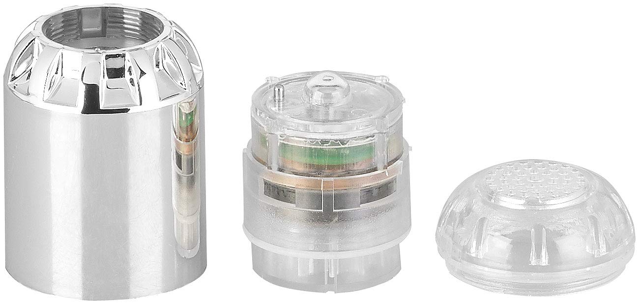 Wow-Effekt garantiert! Dieser LED Wasserhahnaufsatz leuchtet in blau, grün oder rot - je nach Wassertemperatur. Bis 30°C blau, 30-39°C grün, über 39°C rot. Keine Batterien nötig - funktioniert allein durch Wasserkraft mit integriertem Dynamo! Einfach an handelsübliche Armaturen mit M22/M24 Gewinde schrauben. Maße: 38 x 60 mm, Gewicht 52 g. Benötigt mindestens 1,5 bar Wasserdruck. Nicht für Niederdruckgeräte geeignet. Inklusive Adapter und Dichtungsring. Perfekt für Küche oder Bad - deine Gäste werden staunen! Von der Presse gelobt: 'Man braucht sie nicht und will sie trotzdem haben.' Mach deinen Wasserhahn zum Hingucker!