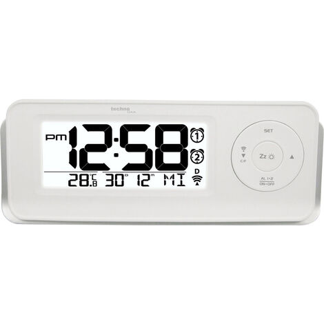 Zwei Weckalarme mit Schlummerfunktion - perfekt für Paare oder wenn du unterschiedliche Aufstehzeiten brauchst. 12/24 Stunden Anzeige und Dimmer-Funktion für die LED-Helligkeit.