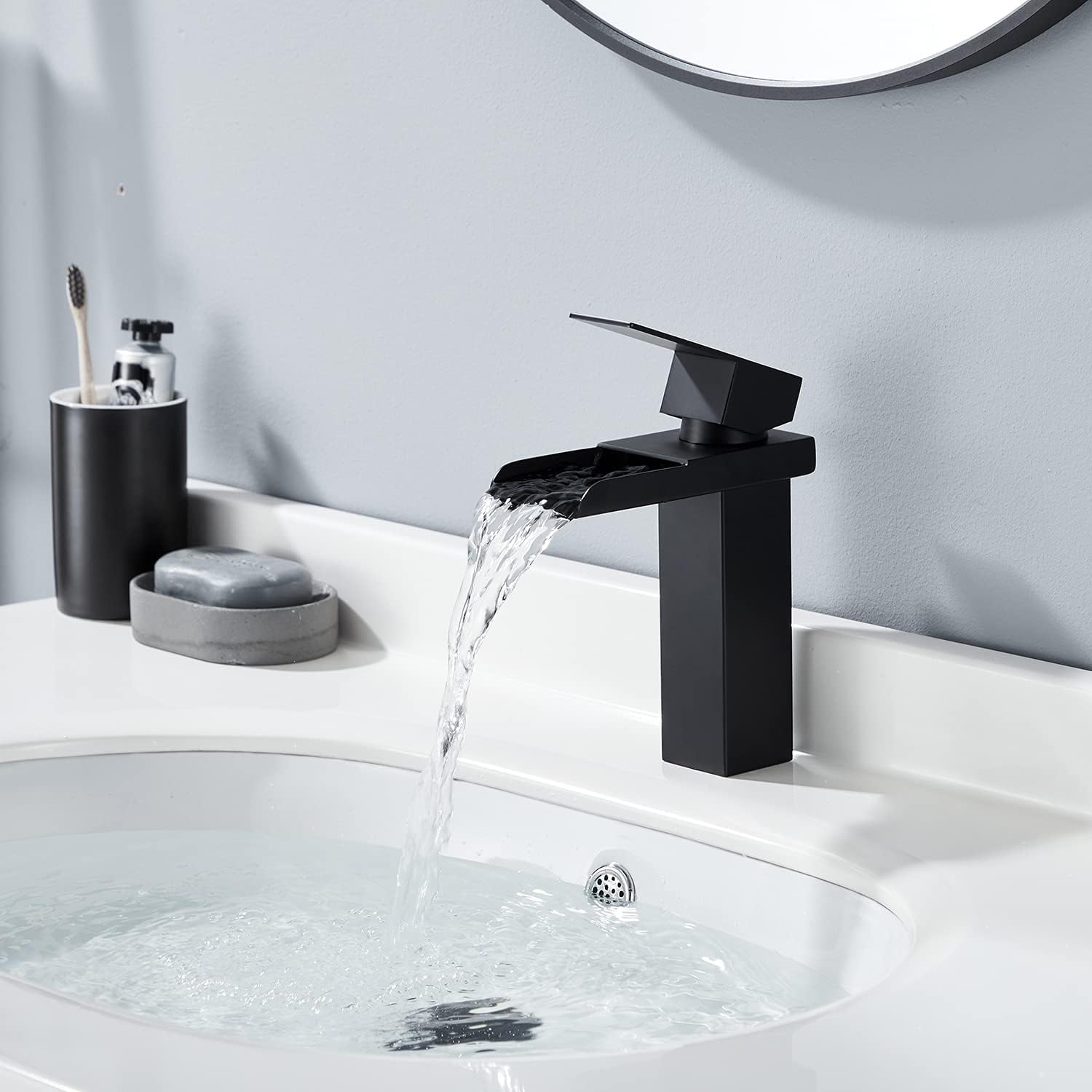 Richtig schicke Armatur für dein Bad! In mattem Schwarz sieht sie einfach edel aus und passt in jedes moderne Badezimmer. Aus hochwertigem 304 Edelstahl - rostfrei und mega langlebig. Die Oberfläche ist kratzfest und hinterlässt keine lästigen Fingerabdrücke. Mit Einhebel-Bedienung - Temperatur und Wassermenge easy mit einer Hand einstellen. Der Neoperl-Strahlregler macht das Wasser weich und spritzt nicht - spart dabei noch Wasser! Innen arbeitet eine Keramikkartusche, die ewig hält (500.000 Schaltzyklen getestet!). Montage ist einfach - Anschlüsse sind Standard, alles dabei inklusive Anleitung. Auslaufhöhe 108mm - perfekt für jedes Waschbecken. So macht Händewaschen Spaß!