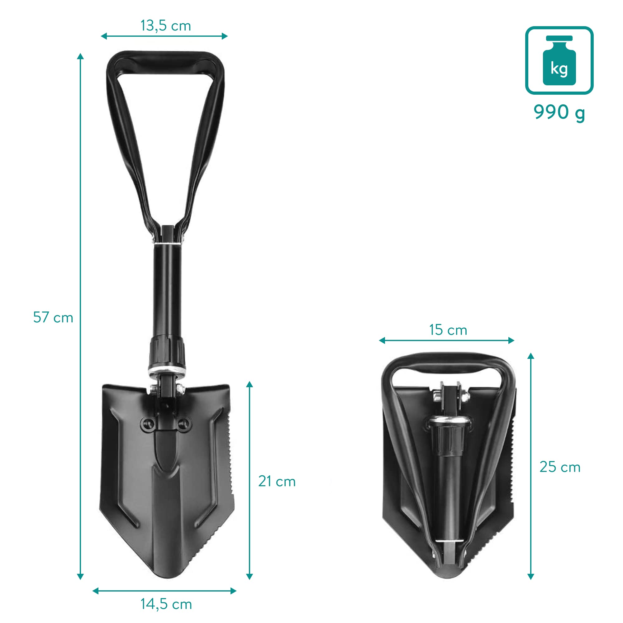 Der LOADCARE Klappspaten ist dein perfekter Begleiter für Outdoor-Abenteuer! Ausgeklappt 63 cm, eingeklappt nur 44 cm - super praktisch für unterwegs. Mit integrierter Wurzelsäge und robustem Holzgriff. Aus Metall und Holz gefertigt, hält er was aus. Perfekt für Camping, Gartenarbeit oder als Notfall-Werkzeug im Auto. Kommt mit praktischer Tragetasche, damit dein Auto sauber bleibt. Einfach ausklappen und loslegen - ob zum Graben, Sägen oder Buddeln. Damit bist du für jedes Abenteuer gerüstet!