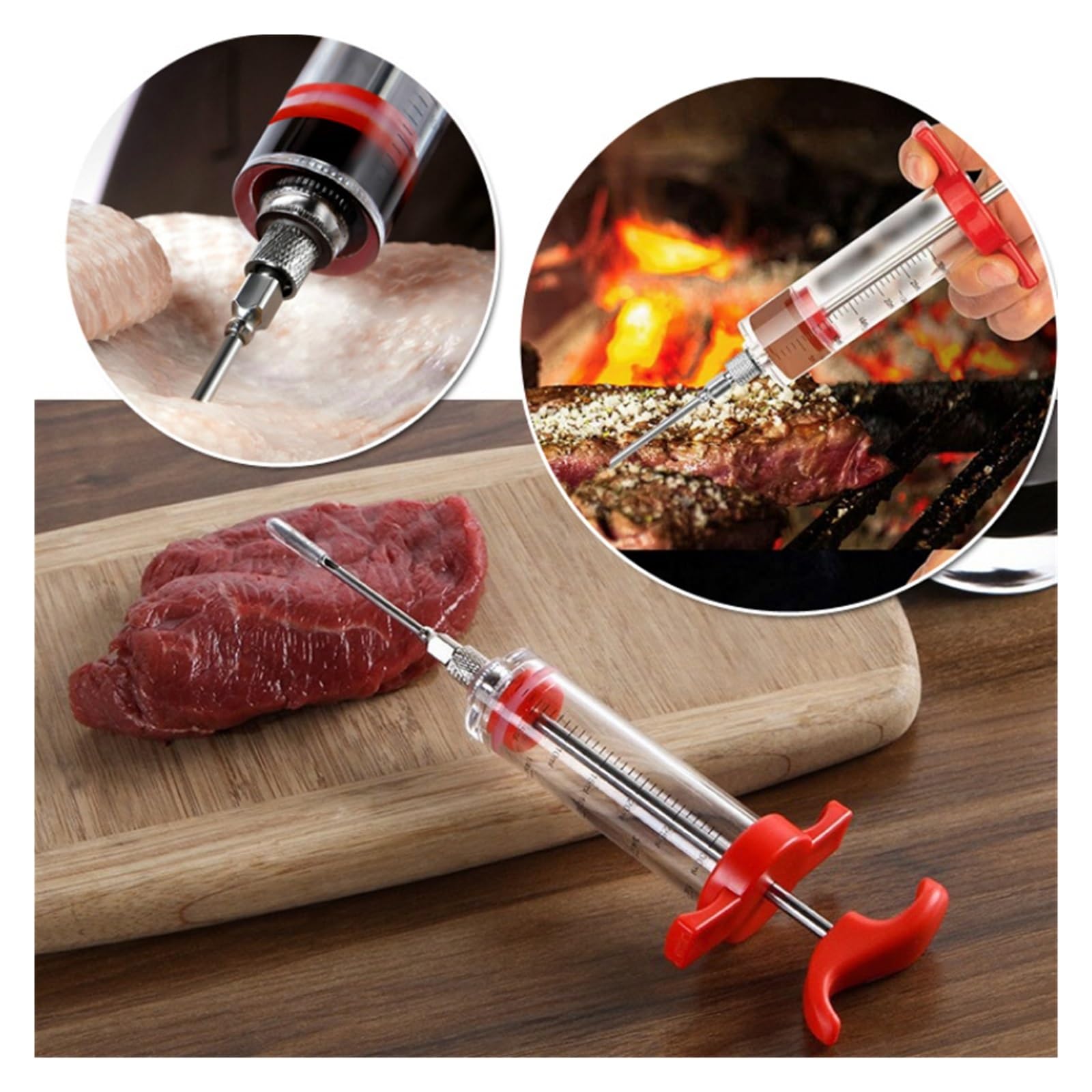 Mach dein Fleisch saftig und aromatisch! Diese praktische Marinadenspritze von LOORGVEL ist ein Game-Changer für jeden Grill-Fan und Hobbykoch. Einfach die Marinade aufziehen und direkt ins Fleisch injizieren - so verteilen sich die Aromen gleichmäßig von innen heraus.\\n\\nMit 28cm Länge und 3cm Durchmesser ist die Spritze ideal für Truthähne, Braten, Steaks und Grillfleisch. Das hitzebeständige Material hält auch bei intensivem Gebrauch problemlos stand. Die klare Kalibrierung hilft dir, die Marinade präzise zu dosieren.\\n\\nSuper einfach zu reinigen - sogar spülmaschinenfest! Der ergonomische Griff liegt angenehm in der Hand und gibt dir volle Kontrolle beim Injizieren. Perfekt für Weihnachten, Thanksgiving oder einfach für den alltäglichen Grillspaß.\\n\\nEgal ob drinnen in der Küche oder draußen beim Camping und Grillen - mit dieser Spritze wirst du zum Marinaden-Profi. Einfach befüllen, injizieren und dich auf saftiges, aromatisches Fleisch freuen!