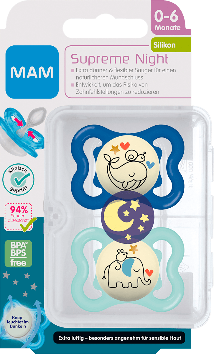 Der LOVI Schnuller ist was Besonderes! Sein dynamisches Silikon dehnt sich aus und zieht sich zusammen - genau wie Mamas Brustwarze. So stört er den natürlichen Saugreflex nicht. Symmetrisch geformt und super elastisch. BPA-frei und aus weichem Silikon, das kaum Allergien auslöst. Die abgeflachte Form ist gut für Zahnstellung und Sprachentwicklung. Die Scheibe hat Lüftungslöcher, damit die Haut atmen kann. Mit praktischem Greifring - einfach zu handhaben. Im Set: 2 Schnuller plus Aufbewahrungsdose. Getestet mit 150 Babys - bestätigt unbedenklich für die Entwicklung. Perfekt für die ersten 3 Lebensmonate deines Kleinen! Hol dir diesen hochwertigen Schnuller und gib deinem Baby das beste Beruhigungsmittel!