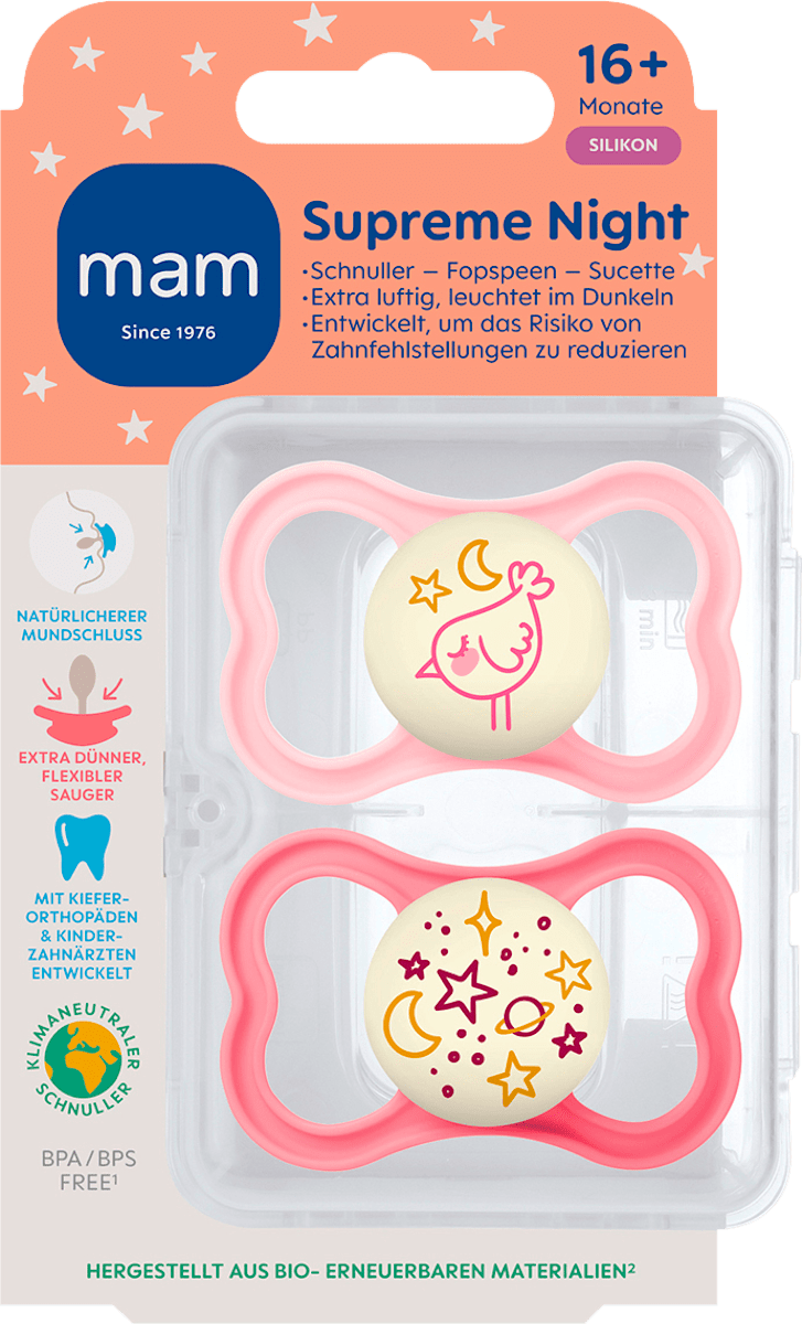 Diese LOVI Schnuller sind einfach genial für die Kleinsten! Der dynamische Silikon-Sauger dehnt sich beim Saugen aus und zieht sich zusammen - genau wie eine echte Brustwarze. Perfekt für Stillkinder, da er den Saugreflex nicht stört. Symmetrisch geformt und brustähnlich - dein Baby wird ihn lieben! BPA-frei und aus weichem, geruchsneutralem Silikon. Die konturierte Scheibe mit Luftlöchern ermöglicht freies Atmen und beugt Hautreizungen vor. Mit praktischem Greifring für einfaches Handling. Im Set: 2 Schnuller plus Hygienekapsel zur sauberen Aufbewahrung unterwegs. In Rosa aus der Botanic Kollektion - einfach süß! Perfekt für Babys von 0-3 Monaten. Einfach geben und dein Baby ist zufrieden!