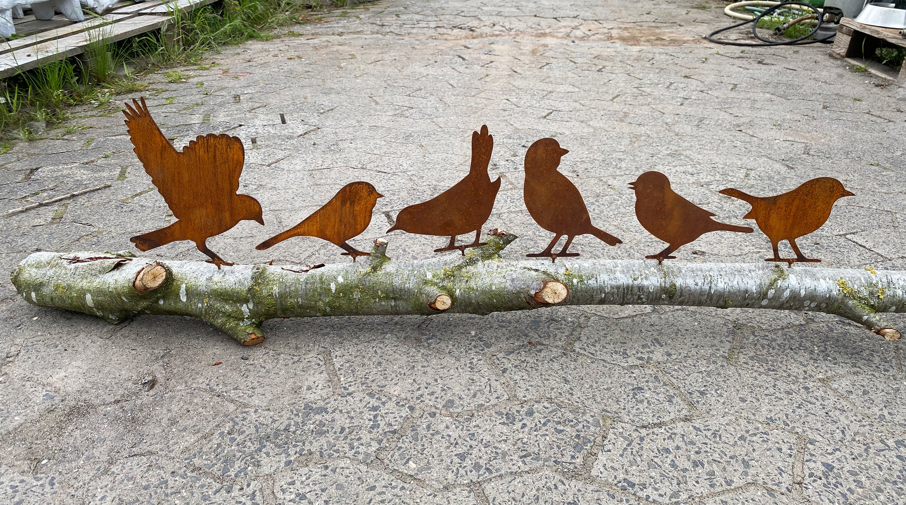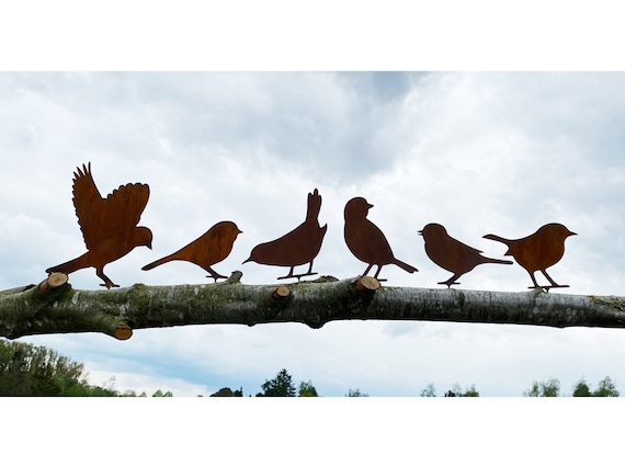 Das Tolle: Weil jeder Vogel einzeln rostet, ist keiner wie der andere. Du kriegst quasi 5 Unikate! Die Befestigung ist total easy - Schrauben rein, Vogel drauf, fertig. Und wenn's mal regnet? Kein Problem, die Rostoptik wird nur noch authentischer.