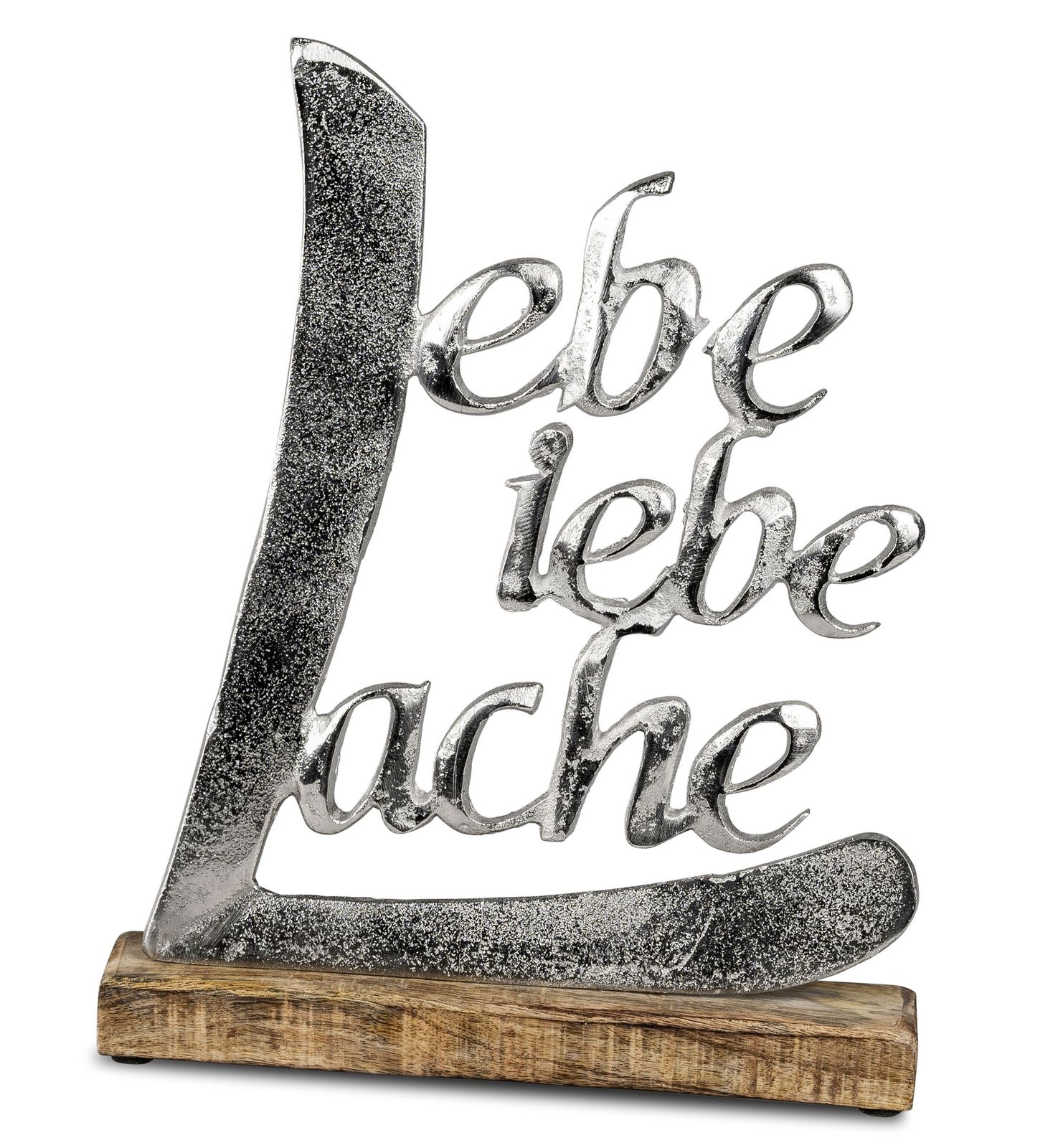 Dieser wunderschöne Schriftzug 'Lache Liebe Lebe' bringt positive Energie in dein Zuhause! Mit 32 cm Höhe ist er der perfekte Eyecatcher für jeden Tisch, Sideboard oder Regal. Die Kombination aus Aluminium und natürlichem Mangoholz sieht nicht nur hochwertig aus, sondern ist auch langlebig. Der Aufsteller steht stabil und ist sofort einsatzbereit - kein Zusammenbau nötig! Perfekt als Geschenk für liebe Menschen oder einfach als tägliche Erinnerung daran, was wirklich wichtig im Leben ist. Ob im Wohnzimmer, Schlafzimmer oder Büro - dieser motivierende Spruch passt überall hin und verbreitet sofort gute Laune! Die neutrale Farbgebung harmoniert mit jedem Einrichtungsstil. Einfach hinstellen und sich über die positive Ausstrahlung freuen!