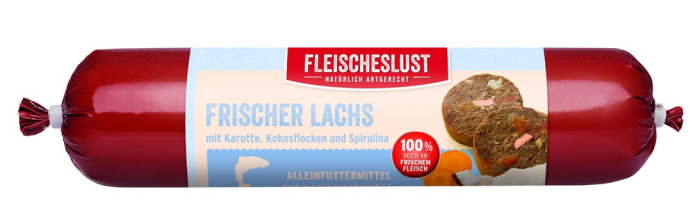 Leckerli für deinen Vierbeiner! Diese Fleischeslust Hundewurst kombiniert 38% Lachs mit 37% Rind (inklusive Herzen, Leber, Lunge) zu einem unwiderstehlichen Menü. Komplett getreidefrei und ohne künstliche Zusätze - nur das Beste für deinen Hund! Mit Karotte, Kürbis und Spirulina für extra Vitamine und zur Unterstützung von Verdauung, Immunsystem sowie Haut und Fell. Die praktische Wurst-Form ist schnittfest und lässt sich einfach portionieren - ob für zu Hause oder unterwegs. 6 Dosen à 800g = 4,8kg Gesamtinhalt - ein Vorrat für mehrere Wochen. Als Alleinfutter für ausgewachsene Hunde aller Rassen geeignet. Dein Hund wird's lieben! Einfach Dose öffnen, portionieren und servieren. Die stückige Konsistenz fördert das Kauen und ist gut für die Zähne. Hochwertige Proteinquellen für energiegeladene Tage. Dein Hund bekommt was er braucht - und was er liebt!