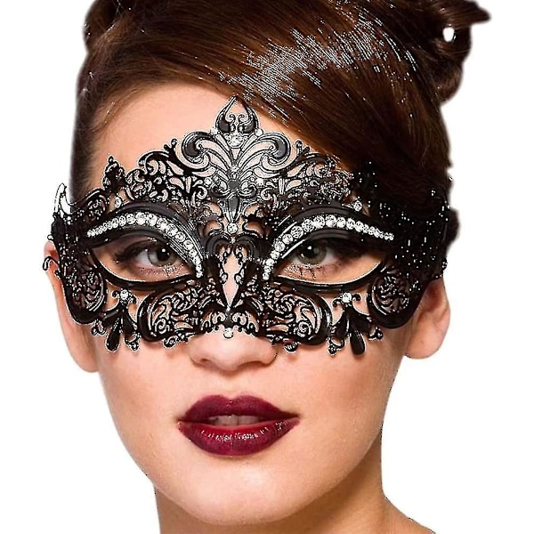 Wow, diese venezianische Maske von Lady of Luck ist ja der absolute Hingucker! Aus hochwertigem Metall mit funkelnden Strass-Steinen verziert, verwandelt sie dich sofort in den Star jeder Party. Jede Maske ist handgefertigt - das macht sie einzigartig! Mit den beiliegenden schwarzen Seidenbändern lässt sie sich perfekt anpassen und sitzt sicher. Ob Karneval, Halloween, Maskenbälle oder Mottopartys - mit dieser Maske wirst du garantiert alle Blicke auf dich ziehen! Das elegante Schwarz passt zu jedem Outfit und die Wimpern betonen deine Augen wunderschön. Einfach umbinden und schon fühlst du dich wie im venezianischen Karneval! Perfekt für alle, die auf der nächsten Party mal so richtig glamourös auftrumpfen wollen.