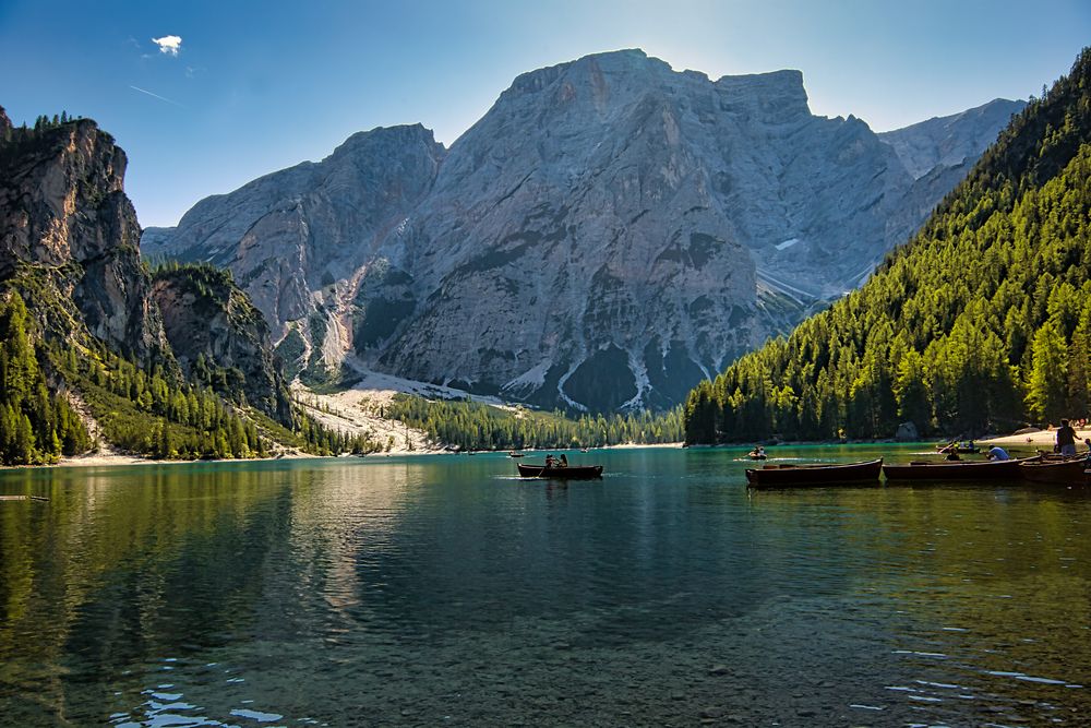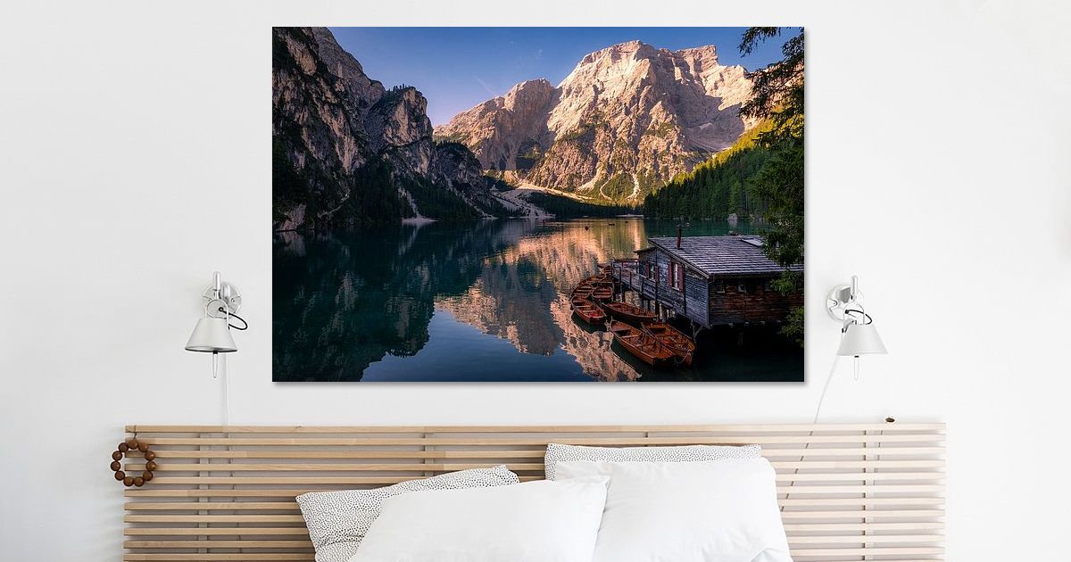 Boah, dieses Bild vom Pragser Wildsee ist einfach nur atemberaubend! Das Motiv zeigt den legendären Lago di Braies in den Dolomiten - dieser türkisfarbene See vor der beeindruckenden Bergkulisse. Format 80x40cm, perfekt für jede Wand. Hergestellt in Deutschland auf echter Leinwand mit Holzrahmen aus nachhaltiger Forstwirtschaft. Die Farben sind mega kräftig und natürlich, gedruckt mit umweltfreundlichen Tinten. Kommt fertig aufgezogen an - einfach auspacken und aufhängen! Ob im Wohnzimmer, Schlafzimmer oder Büro - da kriegst du sofort Urlaubsfeeling. Ein echter Hingucker für alle Italien- und Naturfans!