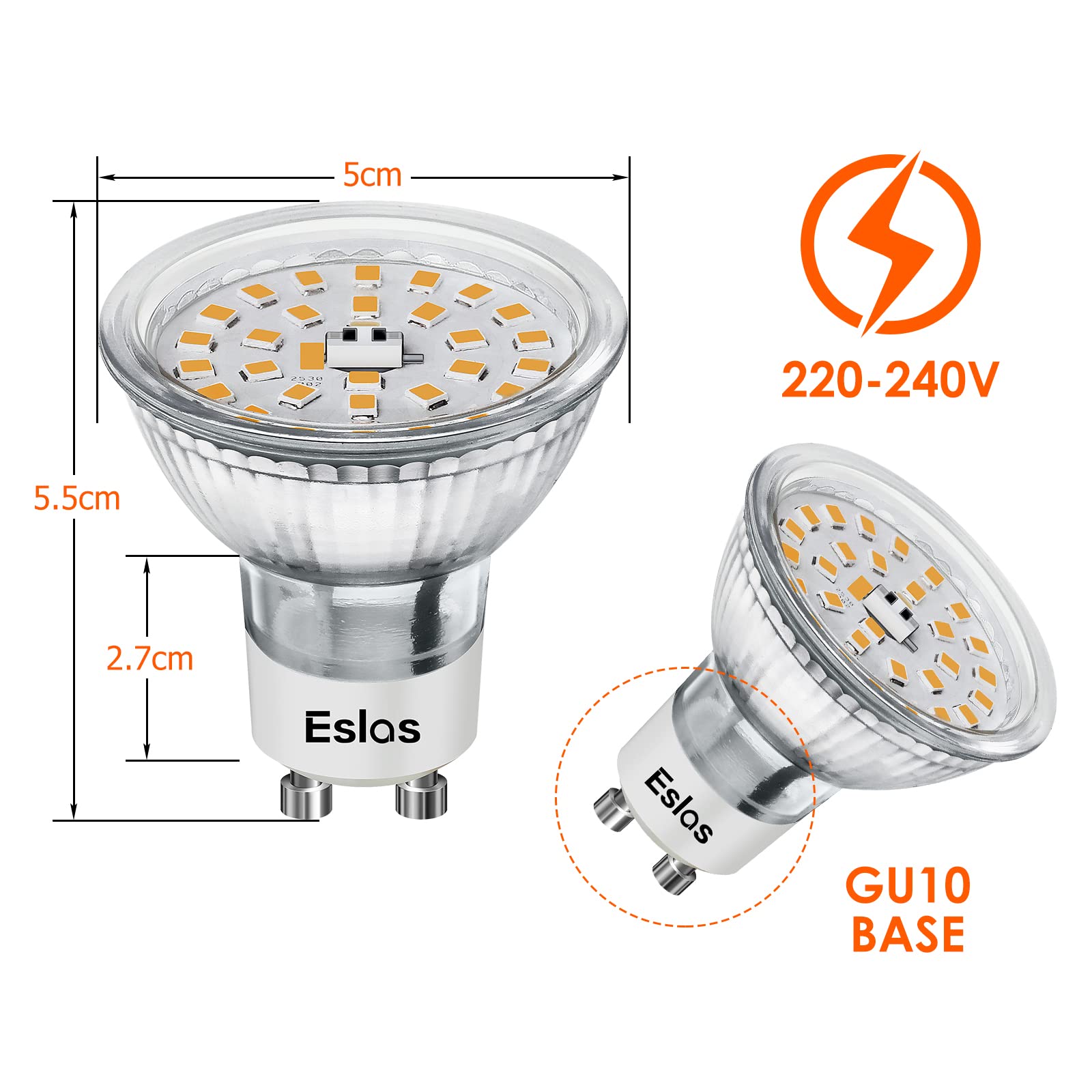 • Eslas GU10 LED Lampen 6W 3000K | 10er Pack Warmweiß, 600 Lumen, Nicht Dimmbar