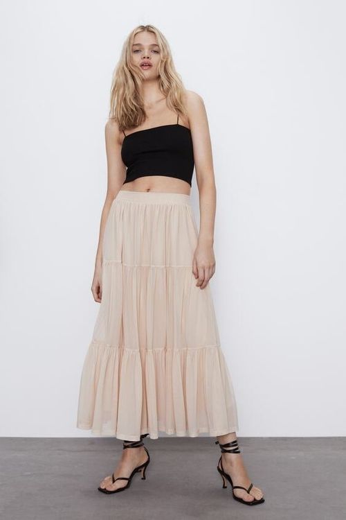 Wie bezaubernd ist dieser lange Netzrock für kleine Prinzessinnen! Aus weichem, atmungsaktivem Polyester-Tüll gefertigt, ist der Rock leicht und bequem - perfekt für den ganzen Tag. Der hohe elastische Bund sitzt ideal und drückt nicht. \\n\\nIn A-Linie geschnitten, fällt der Rock elegant und ist mit seiner wadenlangen Länge ein echter Hingucker. Das mehrlagige Design und der einfarbige Look machen ihn vielseitig kombinierbar. \\n\\nFür Mädchen von 5-13 Jahren geeignet, passt der Rock zu T-Shirts, Tank-Tops oder Blusen. Ob für den Alltag, Tanzveranstaltungen, Geburtstage, Feste oder Urlaub - dieser Rock ist immer die richtige Wahl. \\n\\nBesonders praktisch: Der Rock ist pflegeleicht und behält seine Form. Ein must-have für jede Mädchen-Garderobe, das für besondere Anlässe und den Alltag gleichermaßen geeignet ist!