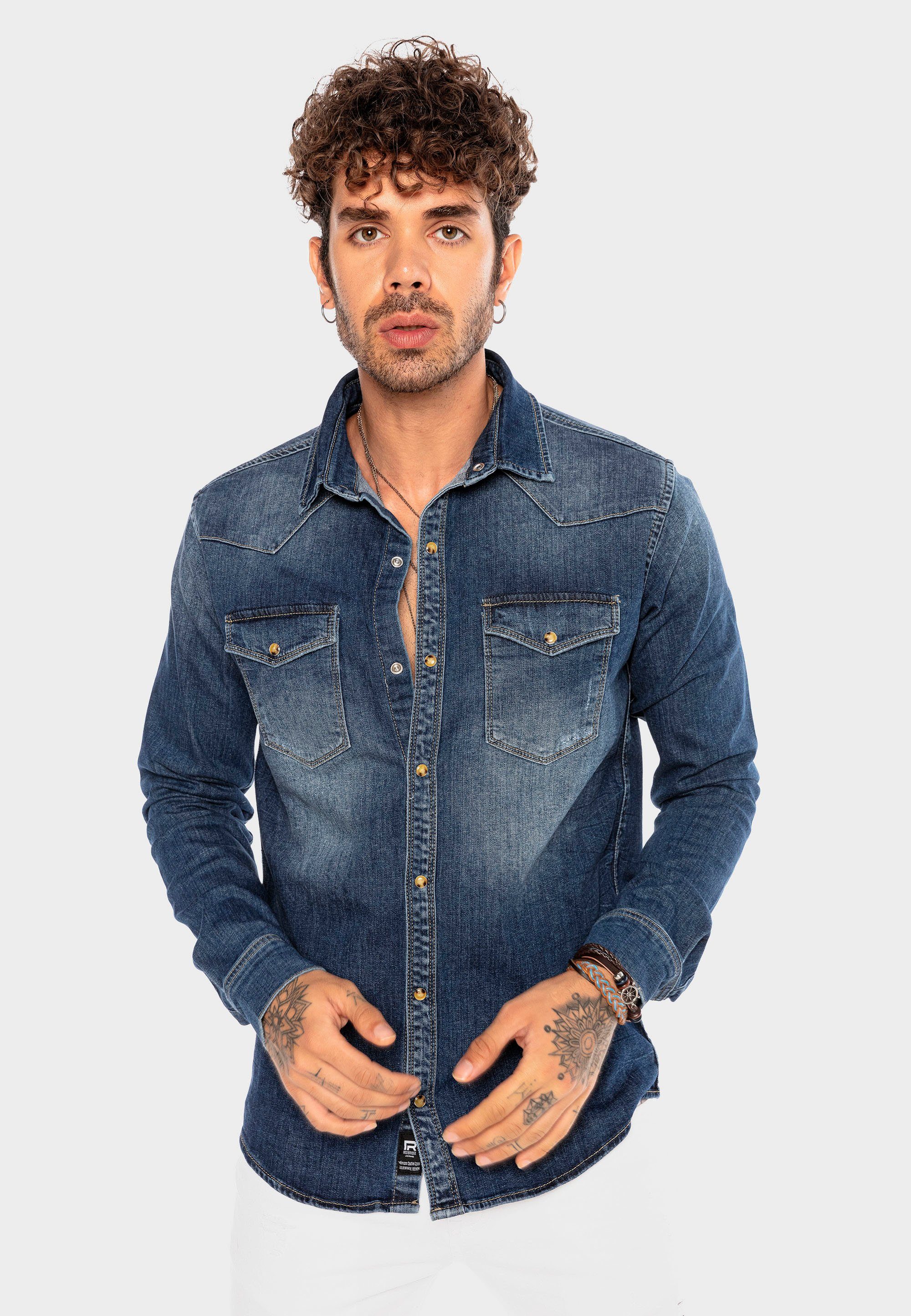 Herren Jeanshemd Langarm Denim - Slim Fit Freizeithemd Mit Brusttaschen