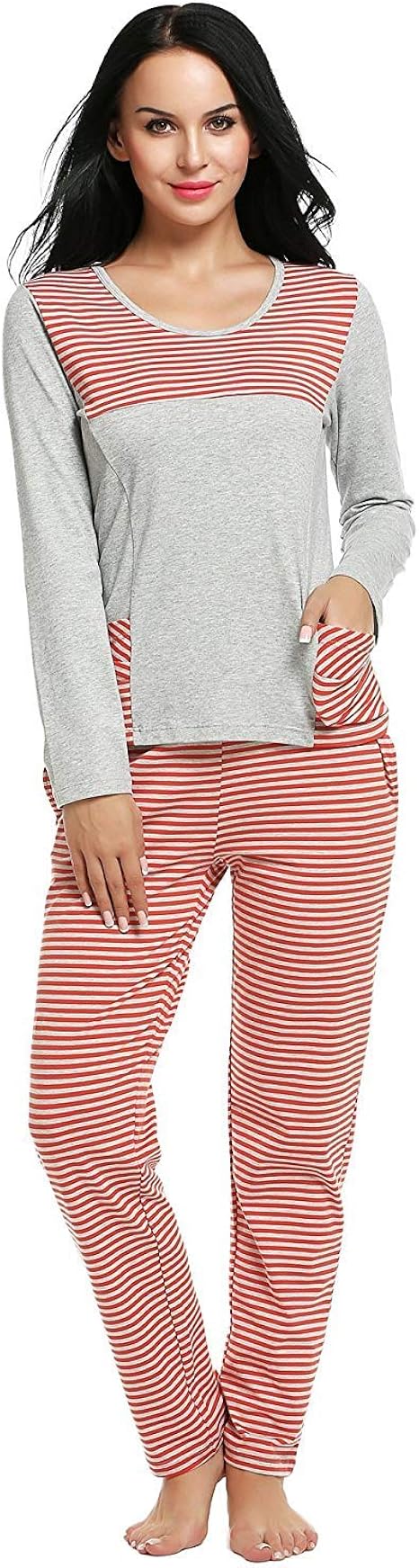 PrinStory Damen Schlafanzug - Langarm Pyjama Mit Taschen