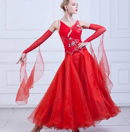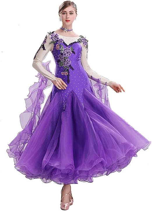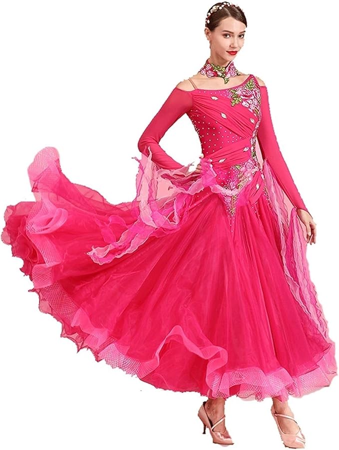 Elegantes Ballsaalkleid für anspruchsvolle Tänzerinnen! Mit langen Ärmeln und glamourösen Applikationen. Aus hochwertigem Spandex und Mesh-Stoff für perfekte Bewegungsfreiheit. Mehrlagiger Rock für dramatische Drehungen. Inklusive Sicherheitshose und BH-Polster. Ideal für Walzer, Tango, Standardtanz und Wettbewerbe. In verschiedenen Größen und Farben erhältlich. Einfach anziehen und auf der Tanzfläche glänzen! Perfekt für Turniere, Shows oder besondere Tanzabende.