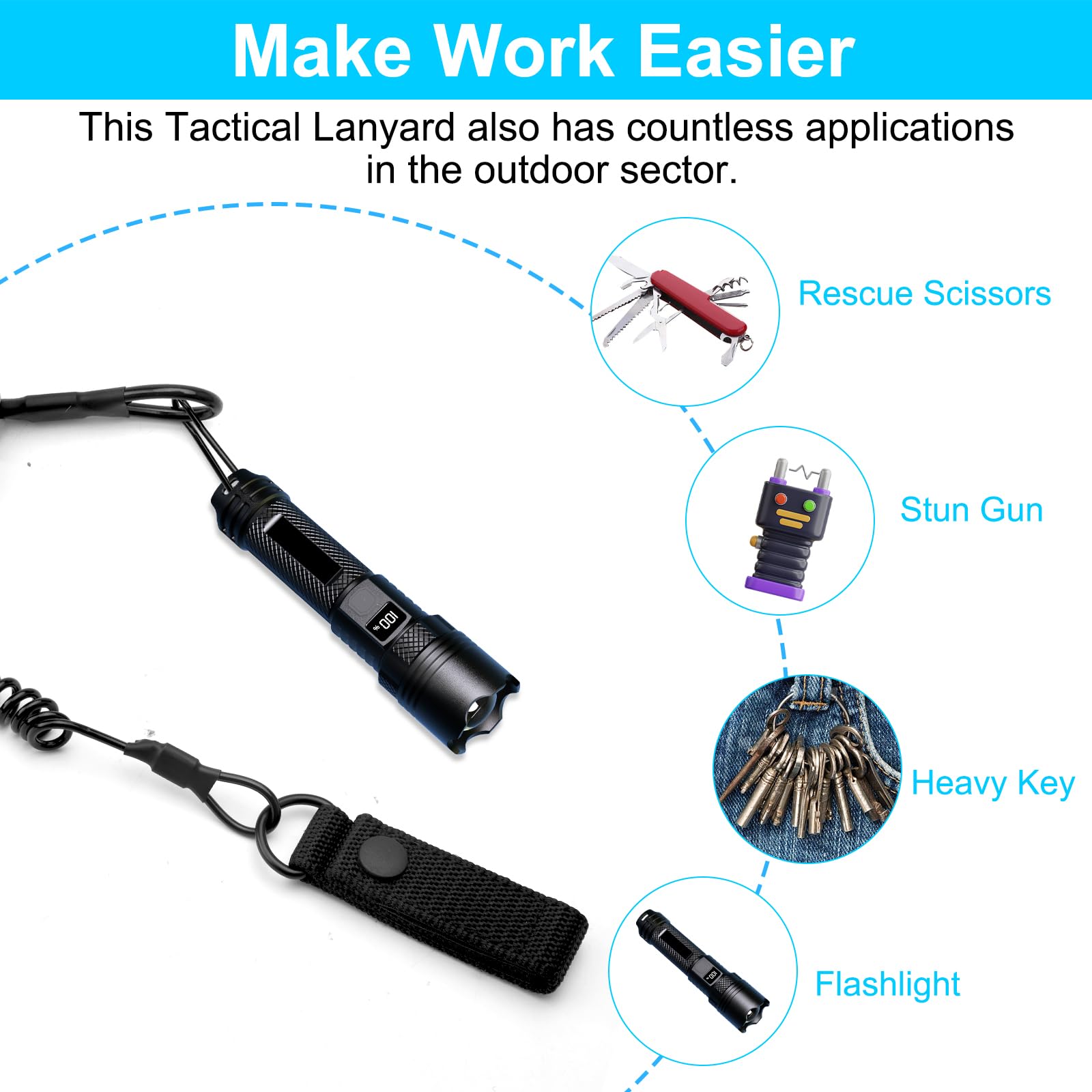 Für alle, die ihr Equipment sicher dabei haben wollen! Dieses Tactical Lanyard dehnt sich von 15cm auf 100cm - perfekt für Taschenlampen, Multitools, Schlüssel. Mit 2 robusten Karabinern, einfach an Gürtel oder Rucksack clipen. Die Stauschlauch-Technologie verhindert Abreißen. Super für Outdoor, Angeln, Camping oder auch den täglichen Einsatz. Das Spiralkabel verheddert sich nicht und klebt nicht bei Hitze. Immer alles griffbereit, ohne langes Suchen. Auch perfekt für Rettungskräfte oder Security. Einfach anschließen und losgehen - deine Ausrüstung ist immer sicher dabei!