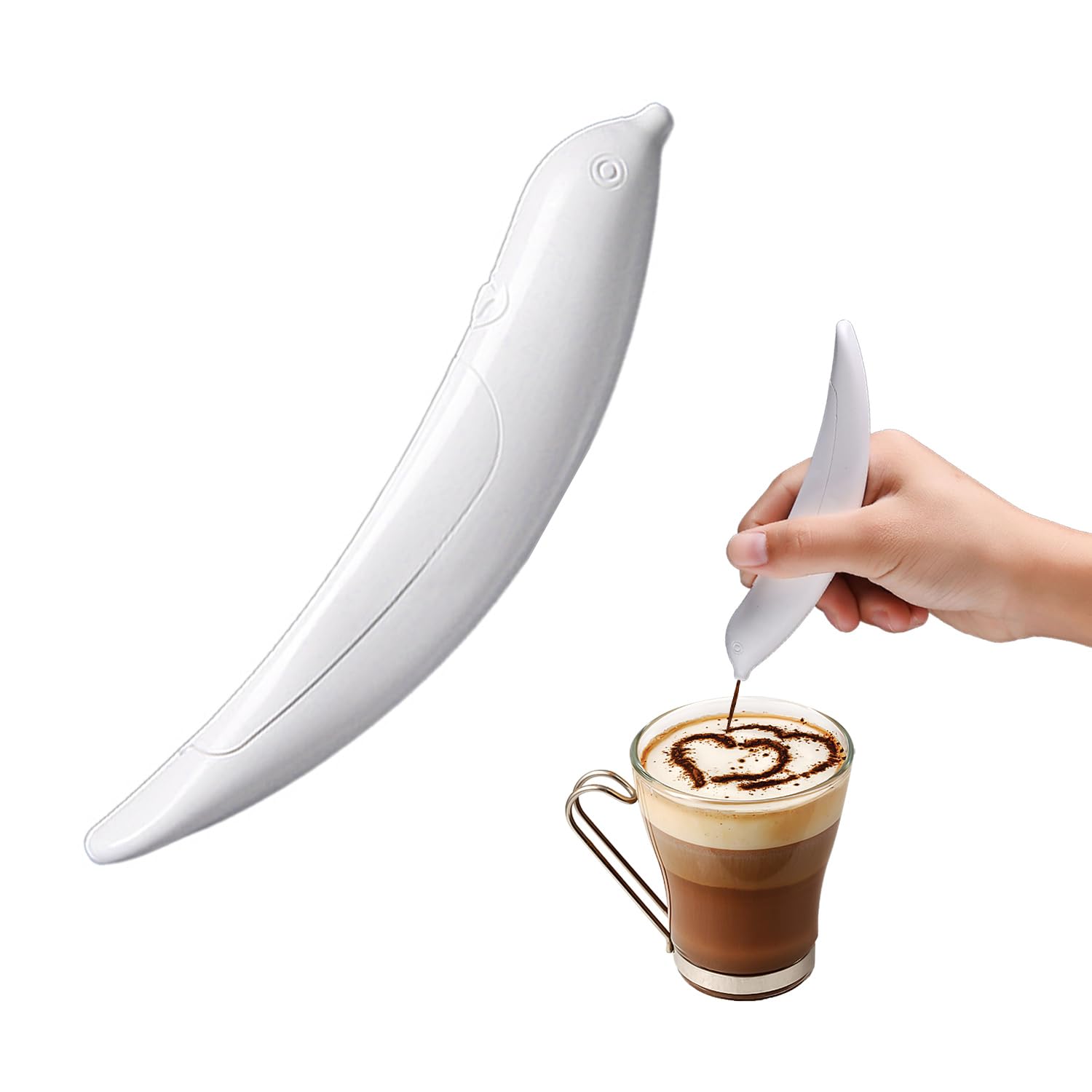 Wer träumt nicht von perfekten Latte Art Motiven? Mit diesem elektrischen Latte Art Pen wird's endlich wahr! Einfach den Knopf drücken und schon gibt der Stift feines Pulver wie Kakao oder Zimt perfekt dosiert ab. So malst du mühelos Herzen, Blumen oder sogar Gesichter in den Milchschaum - wie ein professioneller Barista! Aus robustem ABS-Material gebaut, liegt der Stift super in der Hand und ist dabei so leicht und kompakt, dass du ihn überall mitnehmen kannst. Perfekt fürs Café zu Hause, für besondere Anlässe oder wenn du Gäste beeindrucken willst. Nicht nur für Kaffee geeignet - auch auf Kuchen, Desserts oder anderen Speisen zauberst du damit tolle Verzierungen. Einfach die Kammer mit deinem Lieblingspulver füllen, Stift ansetzen und loszeichnen! Selbst ohne Vorkenntnisse gelingen dir damit atemberaubende Kreationen. Mach aus jedem Getränk ein kleines Kunstwerk!
