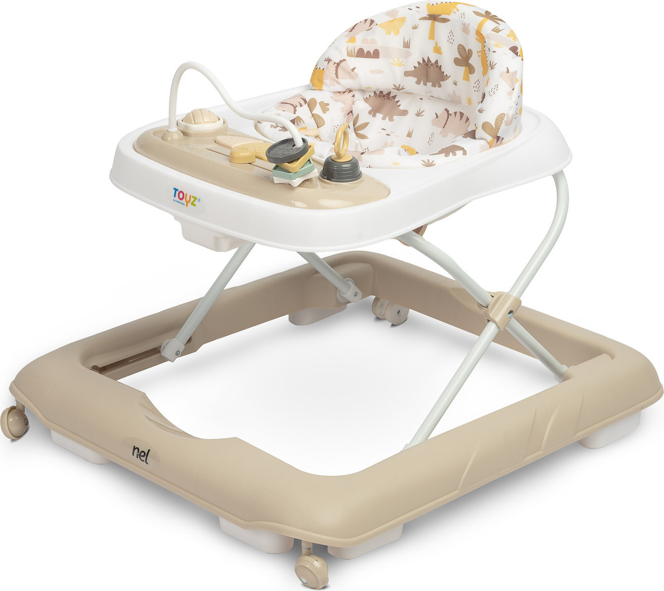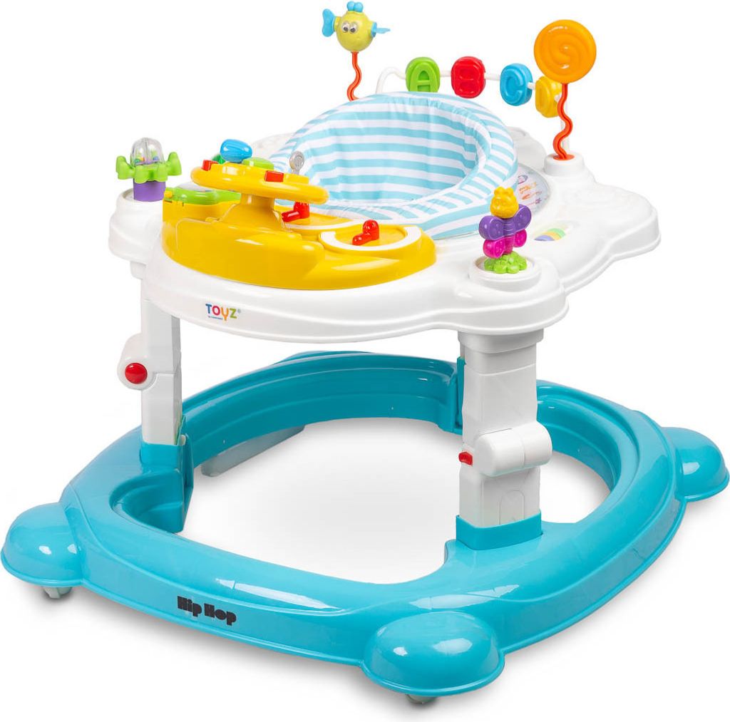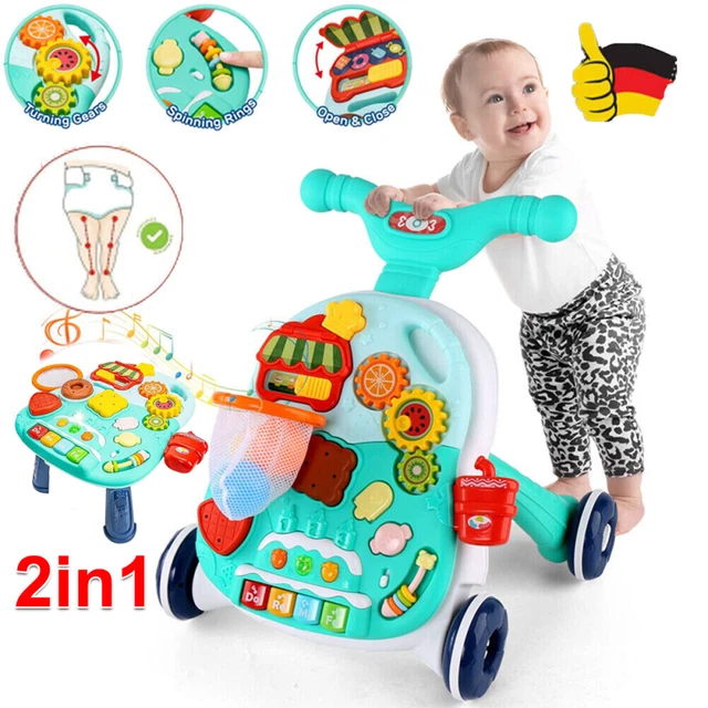 Diese vielseitige Lauflernhilfe wächst mit Ihrem Baby mit! Fünf Modi in einem: Vom ersten Sitzen in der Wippfunktion über den Esstisch bis zur richtigen Lauflernhilfe. Die Höhe lässt sich stufenlos von 37-43cm anpassen, sodass das Kind immer optimal steht. Das bunte Spielcenter mit Musik, Formen und Drehrädern fördert spielerisch die Sinne. Besonders praktisch: Das abnehmbare Tablett wird zur eigenen Essschüssel! Wenn das Baby läuft, wird der Wagen zum Schiebegefährt. Und nach dem Spielen einfach zusammenklappen - nur 18cm flach für platzsparende Aufbewahrung. Das stabile Dreieck-Design und die rutschfeste Matte sorgen für Sicherheit. Aus weichem, atmungsaktivem Material für hohen Sitzkomfort. Ideal für Babys von 6-18 Monaten - ein Begleiter durch die gesamte Krabbel- und Laufphase!