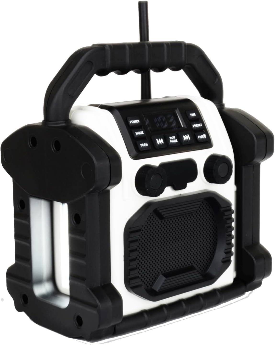 Dieses Radio ist der absolute Alleskönner für Baustelle, Camping oder Garten! Mit 30W Lautsprecher - der Sound ist richtig laut und klar. Bluetooth 5.3 für kabellose Musik von deinem Handy. FM Radio mit 20 Speicherplätzen - alle deine Lieblingssender immer parat. Super praktisch: Kann Handys laden! Mit 8000mAh Akku - hält ewig und ist deine Notfall-Powerbank. IP55 geschützt - hält Spritzwasser und Staub stand. Die LED Taschenlampe ist super hell - perfekt wenn's mal dunkel wird. Mit Uhr und Wecker - du verpasst keinen Termin. USB Anschluss für Sticks - spiel deine eigene Musik ab. 3,5mm Klinke für Kopfhörer - wenn du mal deine Ruhe brauchst. Der Tragegurt ist mega praktisch - einfach über die Schulter und los. Lautstärke regeln ist easy - für jeden Ort die richtige Lautstärke. Akku hält ewig - bis zu 10 Stunden Musikgenuss. Robustes Gehäuse - überlebt auch mal einen Sturz. Perfekt für Handwerker, Angler, Camping-Fans oder einfach für die Garage. Macht jede Party besser - ob auf der Baustelle oder im Garten. Einfach einschalten und freuen - dein neuer Lieblingsbegleiter für unterwegs!