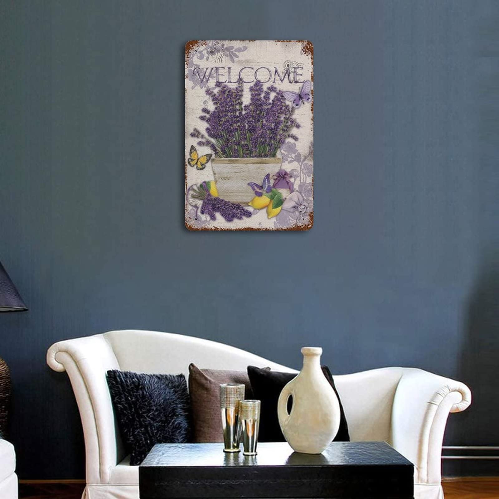 Dieses wunderschöne Blechschild mit Lavendel-Vasen-Motiv bringt romantische Atmosphäre in deine vier Wände! Das 20x30 cm große Schild aus robustem Eisen überzeugt mit leuchtenden Farben, die auch nach langer Zeit nicht verblassen. Perfekt für Schlafzimmer, Wohnzimmer oder Flur - aber auch für Café und Bar bestens geeignet. Die vier vorgebohrten Löcher an den abgerundeten Ecken machen die Montage super einfach. Ob mit Hanfseil, Nägeln oder Klebeband - in wenigen Minuten hängt das Schild an der Wand. Das sanfte Lila-Grün-Farbschema sorgt für eine beruhigende Wirkung und passt zu vielen Einrichtungsstilen. Ein tolles Geschenk für alle, die Retro-Charme lieben! Übrigens: Das Schild ist auch für den Außenbereich geeignet und absolut wetterfest. So holst du dir dauerhaft ein Stück Provence nach Hause!