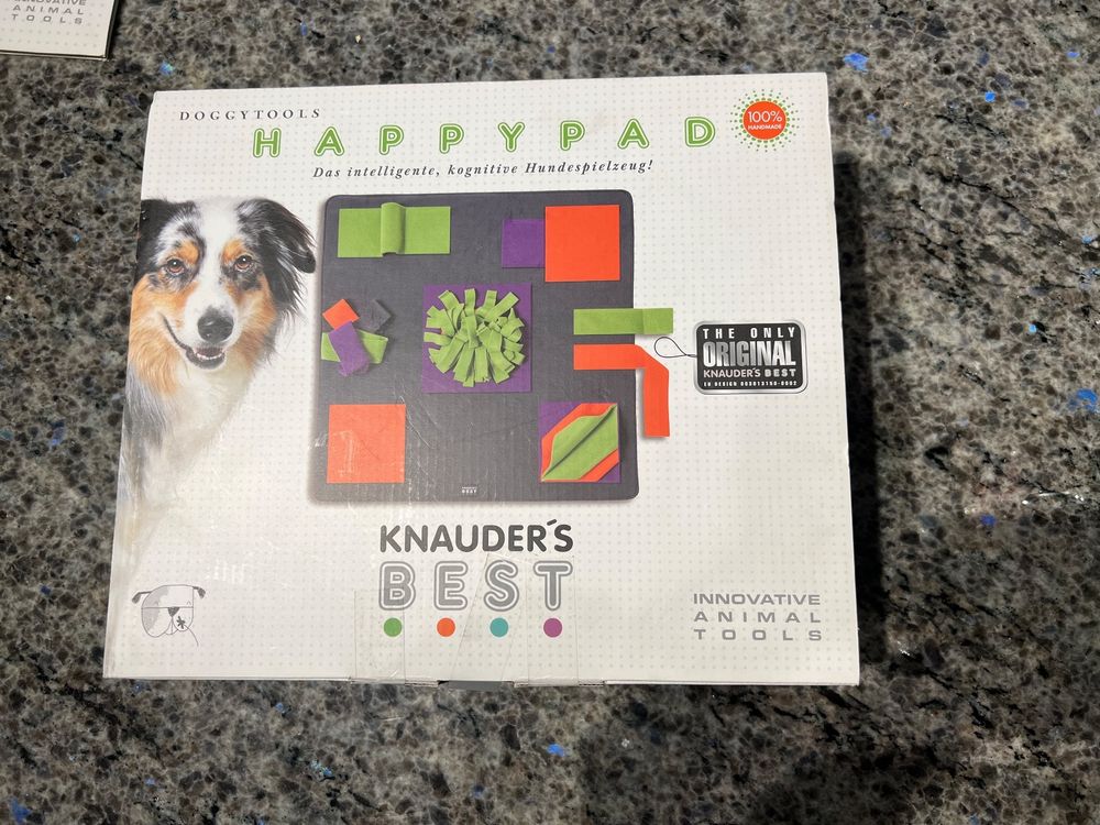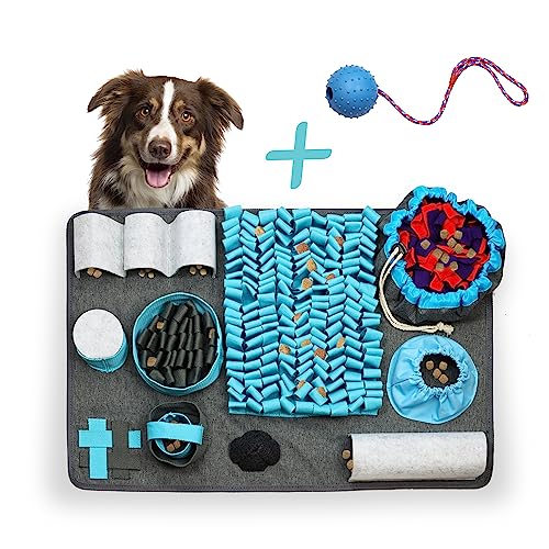 Wow, dein Hund wird diesen Schnüffelteppich lieben! Egal ob Welpe oder Senior - mit den 10 verschiedenen Verstecken wird's nie langweilig. Einfach Leckerlis verstecken und schon geht die Schnüffeljagd los. Der stabile Stoff hält auch bei wilden Spielen stand und die Anti-Rutsch-Unterseite sorgt dafür, dass alles an Ort und Stelle bleibt. Nach dem Spaß einfach in die Waschmaschine stecken oder mit einem feuchten Tuch abwischen. Das Beste: Im Lieferumfang ist sogar ein Wurfball aus Gummi dabei, in dem du zusätzlich Leckerlis verstecken kannst. Perfekt um deinen Hund geistig auszulasten und seinen Geruchssinn zu trainieren. So macht Beschäftigung richtig Spaß und dein Hund ist danach schön ausgeglichen. Einfach super für alle, die ihren Vierbeiner sinnvoll beschäftigen wollen!