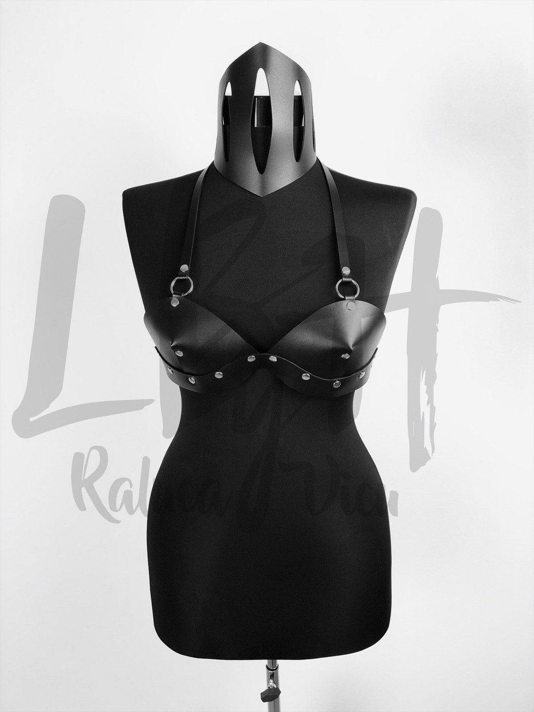 Body Hochglanz-Leder Look - Verstellbarer Hals-BH Für Dessous & Fetisch