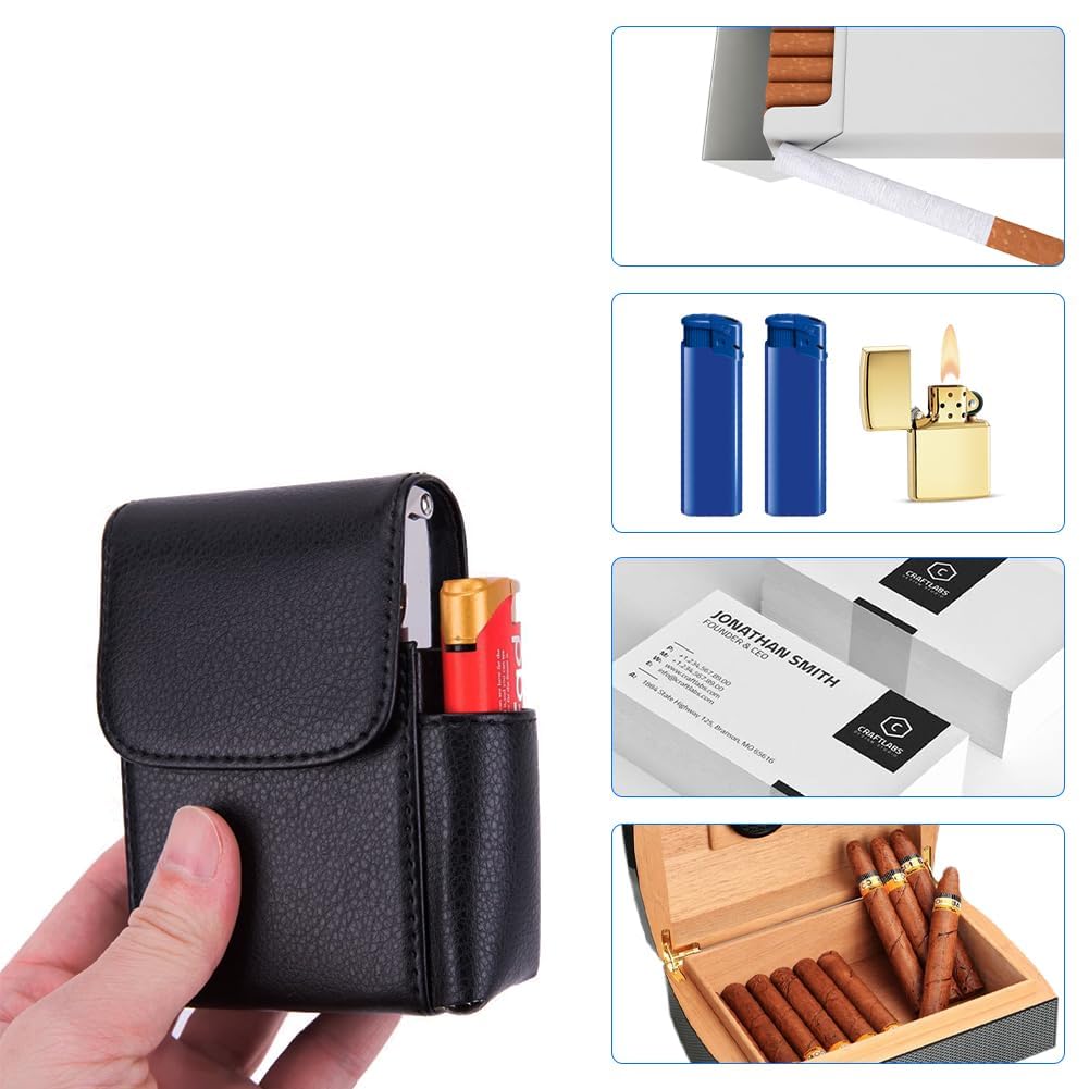 Ordnung und Stil für unterwegs! Dieses elegante Zigarettenetui aus hochwertigem PU-Leder und Edelstahl hält deine Zigaretten sicher und geschützt. Mit einer praktischen Seitentasche für das Feuerzeug - so hast du immer alles griffbereit und musst nicht lange suchen. Die Maße von 9,6 x 6,5 x 1,3 cm sind perfekt für die Jackentasche oder Handtasche. Nur 70g leicht, aber dennoch robust und langlebig. Die gute Verarbeitung und das exklusive Design machen dieses Etui zu einem echten Hingucker. Aber es kann mehr als nur Zigaretten aufbewahren: Auch Visitenkarten, Transitkarten, Ausweise oder andere kleine Gegenstände finden hier Platz. Das schlichte Design ohne Schnickschnack kommt sowohl bei Frauen als auch Männern gut an. Perfekt als Geschenk für rauchende Freunde oder Familienmitglieder. Das Etui schützt die Zigaretten vor Knicken und Feuchtigkeit und hält sie frisch. Ein echter Begleiter für jeden Tag, der nicht nur praktisch ist, sondern auch stilvoll aussieht. Ob im Büro, auf Reisen oder in der Freizeit - mit diesem Zigarettenetui bist du immer bestens ausgestattet und behältst den Überblick über deine Raucherutensilien.
