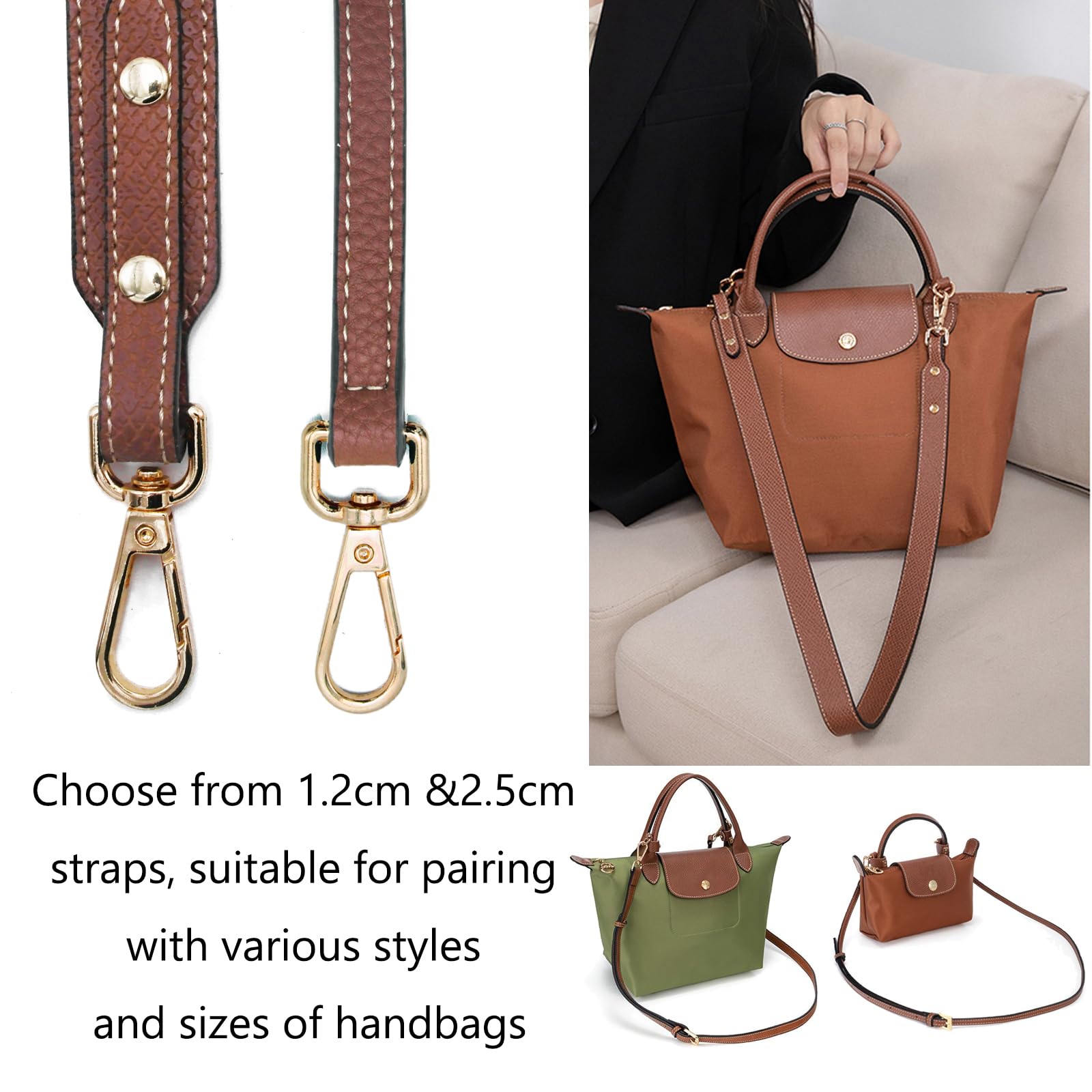 Mach deine Lieblingstasche zur praktischen Umhängetasche! Dieser Schultergurt aus hochwertigem Rindsspaltleder ist nicht nur super stylisch, sondern auch mega praktisch. Mit den mitgelieferten Adaptern kannst du ihn ganz einfach ohne Bohren an deiner Tasche befestigen - deine Tasche bleibt komplett unversehrt! Der Gurt ist von 94cm bis 124cm verstellbar und 1,2cm breit, sodass er sich perfekt an deine Körpergröße anpassen lässt. Besonders bei schwereren Taschen oder auf Reisen merkst du den Unterschied sofort: Die Last verteilt sich angenehm auf der Schulter, und deine Hände sind frei. Ob für Longchamp Taschen, Handtaschen oder DIY-Projekte - der Gurt ist vielseitig einsetzbar. Das Leder ist wasserabweisend, verschleißfest und wird mit der Zeit noch schöner. Einfach die Adapter an der Tasche befestigen, den Gurt einklinken und schon kannst du handsfree durch den Tag gehen. Total praktisch beim Einkaufen, Reisen oder wenn du einfach mal beide Hände frei haben willst!