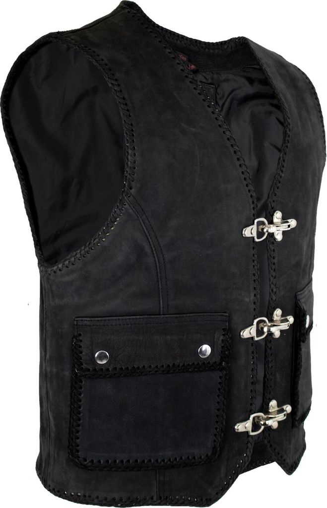 Stylische Lederweste für echte Bike-Fans! Diese hochwertige Weste aus 100% Rindleder ist perfekt für Motorradfahrer, Rocker oder einfach nur für den coolen Look. Mit authentischen Schnallen und robusten Reißverschlüssen. In schwarzer Farbe, die zu jedem Outfit passt. Besonders praktisch: Es gibt sie auch in extra großen Größen! Perfekt für Bikerinnen, die Wert auf Qualität und Stil legen. Ob für die nächste Motorradtour, für Festivals oder einfach für den Alltag - diese Weste macht immer eine gute Figur. Die Verarbeitung ist erstklassig und das Leder wird mit der Zeit noch charaktervoller. Ein zeitloser Klassiker, der in keiner Garderobe fehlen sollte. Ideal auch für Outdoor-Aktivitäten wie Jagd oder Camping. Die Weste bietet nicht nur Style, sondern auch praktischen Schutz vor Wind und Wetter. Ein Must-Have für alle, die den authentischen Biker-Look lieben!