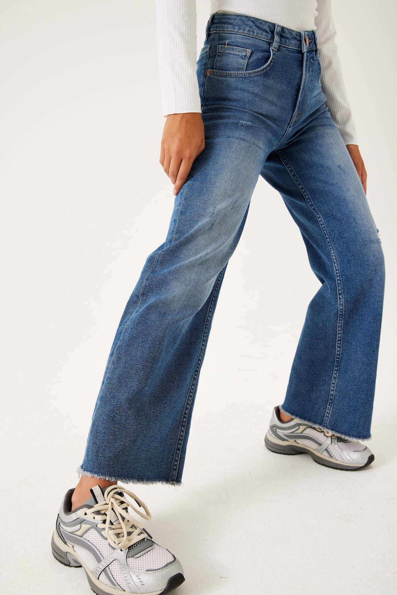 Die Garcia Wide Leg Jeans Annemay ist der absolute Trend für modebewusste Mädchen! Mit ihrem lässigen Weitbeinschnitt sitzt sie nicht nur super bequem, sondern sieht auch noch megastylisch aus. In einem schönen Blauton passt sie zu allem - ob T-Shirt, Bluse oder Sweater. Perfekt für die Schule, Freizeit oder besondere Anlässe. Die Jeans ist aus hochwertigem Denim gefertigt und hält auch aktivem Teenager-Alltag stand. Deine Tochter wird sie lieben!