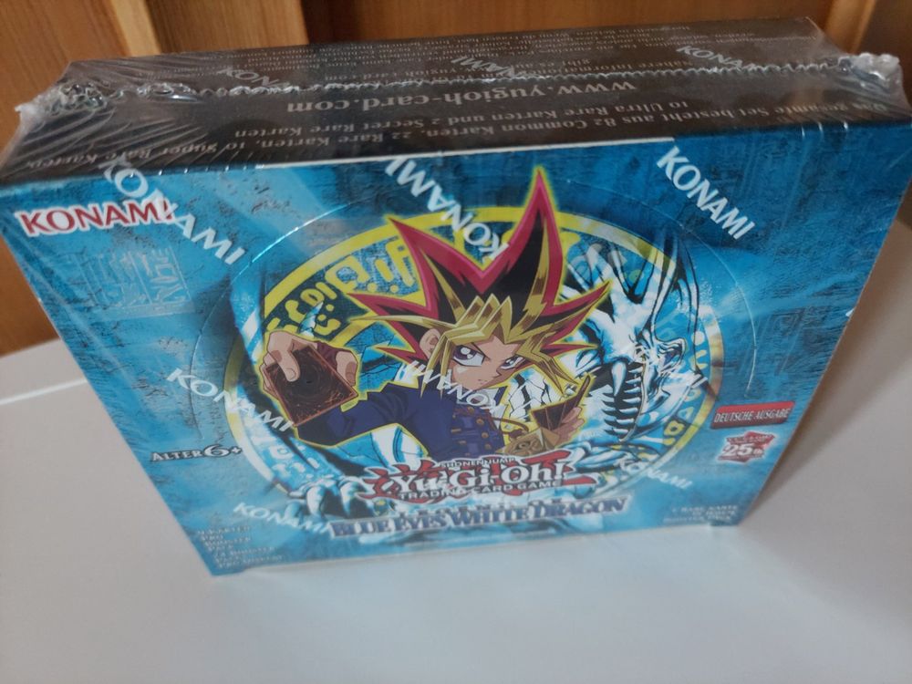 Yu-Gi-Oh! Fans aufgepasst - das legendäre Legend of Blue Eyes White Dragon Display ist zurück! Und zwar pünktlich zum 25. Jubiläum des Trading Card Games in der deutschen Ausgabe. Dies war das allererste Booster-Set überhaupt - jahrelang konnte man diese begehrten Packs nur in der Legendary Collection ergattern. Jetzt gibt's sie endlich wieder als eigenständige Booster! Das Besondere: Enthalten sind beide Secret Rares aus dem originalen Set. Insgesamt erwarten dich 126 Karten: 82 Common Karten für deine Basis, 22 Super Rare Karten mit besonderem Glanz, 20 Ultra Rare Karten die richtig was hermachen, und die krönenden 2 Secret Rare Karten die jedes Sammlerherz höherschlagen lassen. Bekannte Karten wie Exodia, die Verbotene, Topf der Gier und Raigeki sind dabei - echte Klassiker also! Ein Muss für jeden echten Yu-Gi-Oh! Sammler und Spieler. Dieses Display gehört einfach in jede Sammlung - jetzt zuschlagen bevor es wieder weg ist!