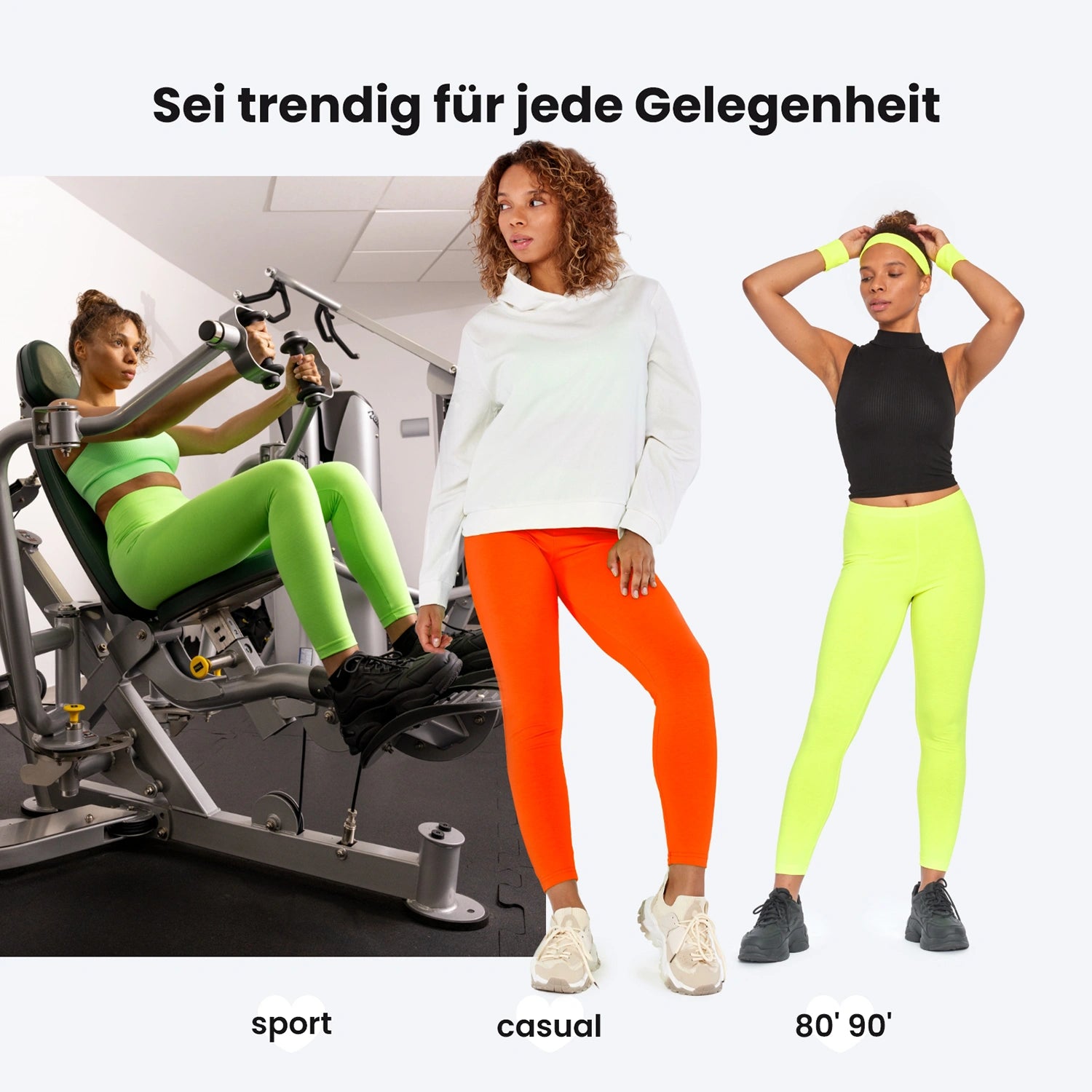 Wow, diese Neon-Leggings bringen Farbe in dein Leben! Perfekt fürs Gym, als 80er Jahre Outfit oder für den nächsten Festival-Besuch. Mit 2,5 cm breitem Gummibund - bequem und drückt nicht. Der hohe Schnitt sitzt wie angegossen. Unsere Models (170 cm) tragen Größe S - also gut zu wissen für die Größenwahl. Hergestellt in Europa unter fairen Bedingungen. Ob Yoga, Jogging oder Party - mit diesen Knallbunten wirst du zum absoluten Hingucker! 💥