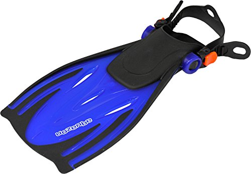 Wow, diese kurzen Schnorchelflossen in Blau sind perfekt für den nächsten Urlaub! Superleicht und kompakt - passen easy in jeden Reisekoffer. Mit den Doppelkanal-Ablaufröhrchen läuft das Wasser super schnell ab, du hast weniger Widerstand und mehr Kontrolle. \\n\\nDas Material ist total weich und angenehm am Fuß - keine Blasen, kein Drücken! Die rutschfeste Sohle gibt dir auch am Poolrand sicheren Halt. Und das coole Flammen-Design sieht nicht nur gut aus, es reduziert auch noch den Wasserwiderstand. \\n\\nFür wen sind die Flossen ideal? Für alle, die gerne schnorcheln, im Pool trainieren oder einfach mal entspannt im Meer plantschen. Die Größe passt für 25-30 Yards (so ca. 23-27cm). \\n\\nBesonders praktisch: Die weichen Fußtaschen machen das Schwimmen mega bequem, die Füße werden nicht so schnell müde. Und weil die Flossen so kurz sind, bist du damit auch wendiger unter Wasser. Egal ob du Anfänger oder Profi bist - mit diesen Flossen macht Schwimmen einfach mehr Spaß! \\n\\nPerfekt für den Familienurlaub, den Schwimmbadbesuch oder die nächste Schnorcheltour. Einfach anziehen und ab ins Wasser - viel Vergnügen!