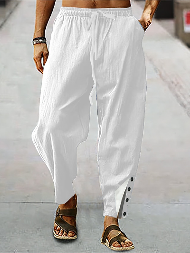 Diese Leinenhose für Herren ist der absolute Sommer-Liebling! Aus atmungsaktivem Stretch-Leinen fühlt sie sich super leicht und bequem an. Der Kordelzug am Bund sorgt für die perfekte Passform - kein lästiges Bändel binden mehr! Mit zwei schrägen Taschen für Handy, Schlüssel & Co. Perfekt für Strandtage, Yoga, oder einfach nur zum Relaxen zu Hause. Kombinier sie mit nem Basic-Shirt und Sneakern für den lässigen Look oder mit nem Leinenhemd für besondere Anlässe. Einfach ein Allrounder für den Sommer - bequem, stylisch und praktisch!