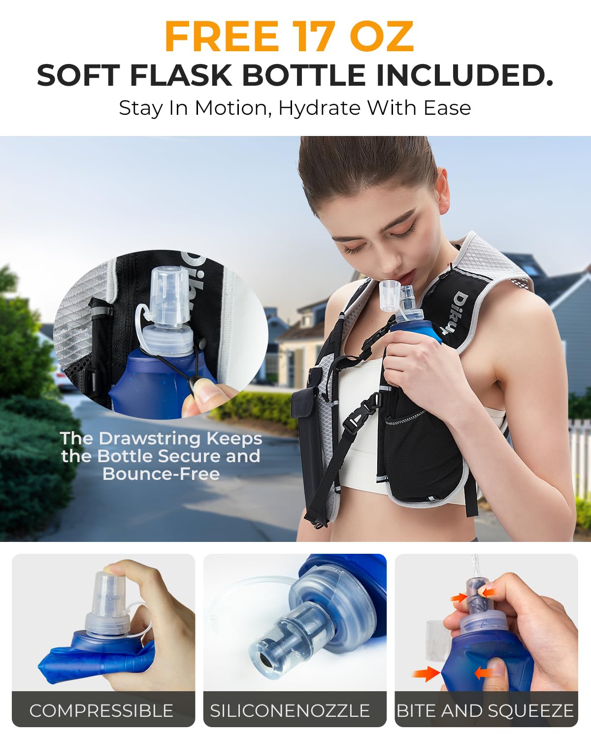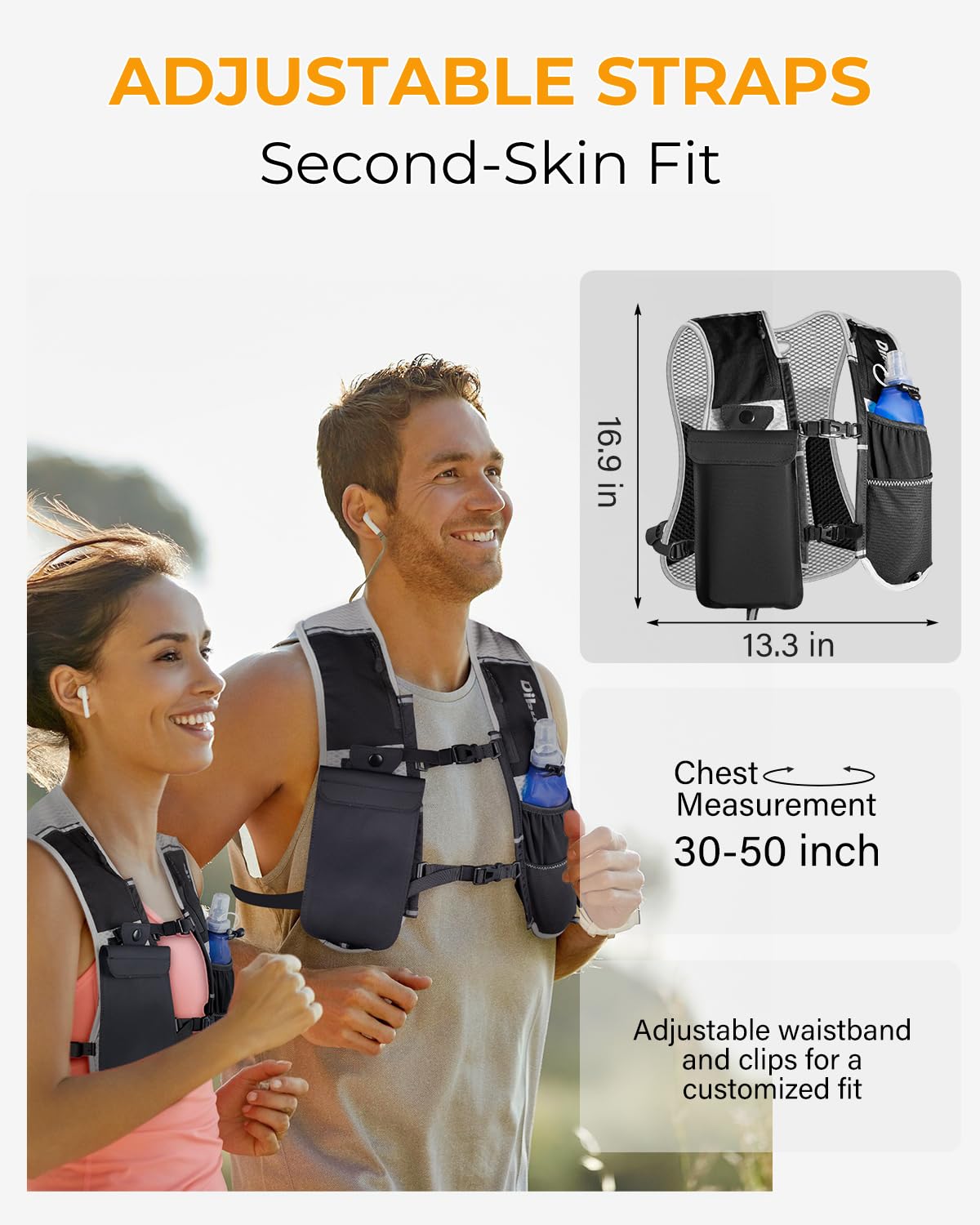 Diese Laufweste ist dein perfekter Begleiter für lange Läufe und Outdoor-Abenteuer! Mit nur 125 Gramm kaum spürbar, aber vollgepackt mit cleveren Features. Inklusive 250ml weicher, BPA-freier Wasserflasche - perfekt für unterwegs ohne zu stoppen. Das 3D-Mesh-Material ist super atmungsaktiv und verhindert Überhitzung. Mehrere Taschen bieten Platz für dein Smartphone (bis 17,8cm), Energiegels, Schlüssel und Karten. Die verstellbaren Brustgurte sorgen für wackelfreien Sitz ohne Scheuern - egal ob beim Sprint oder Trailrunning. Reflektierende Elemente machen dich bei Dunkelheit sichtbar bis 200m Entfernung. Der wasserabweisende Stoff schützt deine Sachen bei leichtem Regen. Perfekt für Marathon-Training, Wandern, Radfahren oder Fitness. Alles griffbereit und sicher verstaut, während du die Hände frei hast. Mach dein nächstes Training noch komfortabler - mit dieser durchdachten Laufweste!