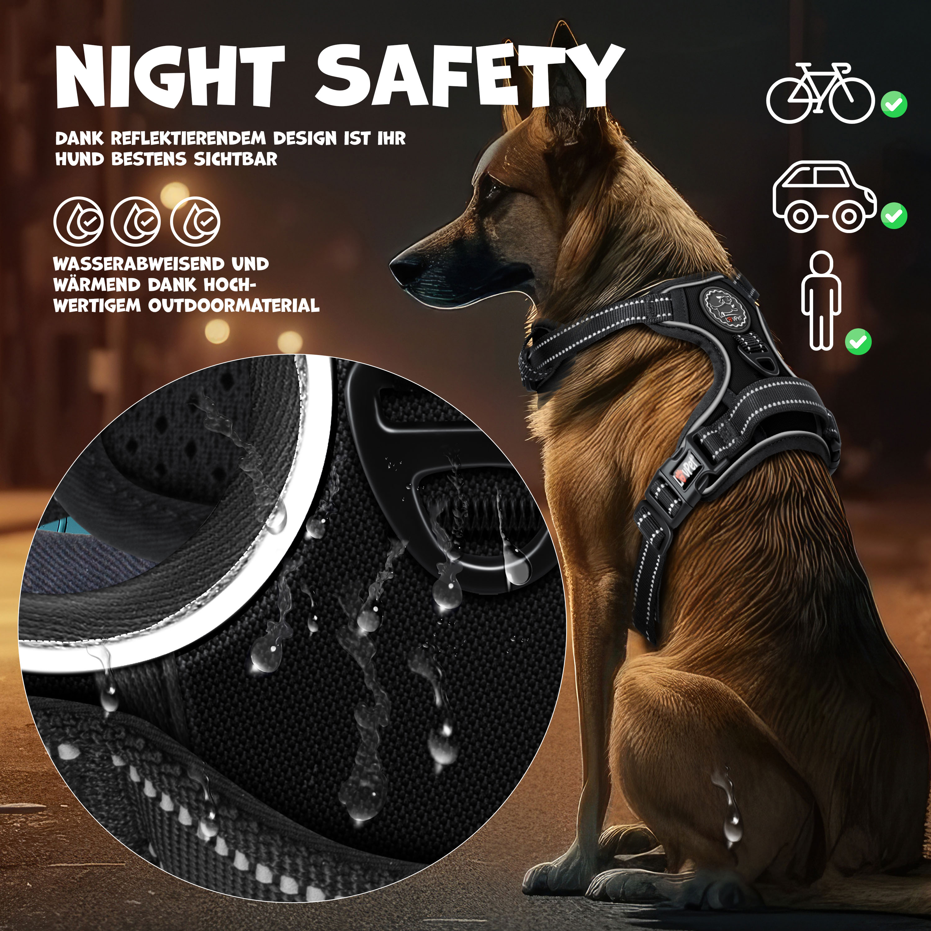 Maximaler Komfort für deinen Vierbeiner! Das OFFCUP Step-In Geschirr in Größe L und blauer Farbe macht das Anziehen zum Kinderspiel - einfach reinsteigen, schnallen, fertig! Aus weichem, atmungsaktivem Mesh-Material gefertigt, das sich angenehm auf dem Fell anfühlt und nicht scheuert. Die reflektierenden Streifen sorgen für beste Sichtbarkeit bei Dunkelheit - sicherheit geht vor! Mit Anti-Zug-Design verteilt sich der Druck gleichmäßig, kein Würgen am Hals. Inklusive 140 cm langer Leine mit Reflektorstreifen. Dreifach gesichert mit robuster Schnalle, Doppel-D-Ring und Sicherungsknopf - da kann nichts passieren! Perfekt für kleine Hunde, Welpen und sogar Katzen. Einfach zu reinigen und schnell trocknend. Ideal für Spaziergänge, Wanderungen oder Reisen. Wichtig: Vor dem Kauf unbedingt Hals- und Brustumfang deines Tieres messen!