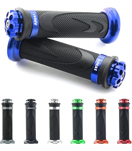 Stylische Lenkergriffe von der deutschen Marke Area1! CNC-gefäst aus Aluminium mit eloxierter Oberfläche - die Farben sind kratzfest und langlebig. Der Gummi besteht aus hochwertigem TPE-Material (kein stinkendes PVC!). Maße: 22mm links, 24mm rechts (dehnbar bis 25mm). Passt für Yamaha FZS 600/1000, FZ1 Fazer, FZ6 Fazer, FZ8, YZF-R125, YZF-R1, R6, YZF-R7, TZR50, SZR und viele mehr. Länge ca. 12,5cm, offene Enden für Spiegel oder Vibrationsdämpfer. Einfache Montage: Alte Griffe mit Messer aufschneiden, neue mit etwas Wasser befeuchtet aufziehen. Deutsche Qualität mit 2 Jahren Funktionalitätsgarantie!