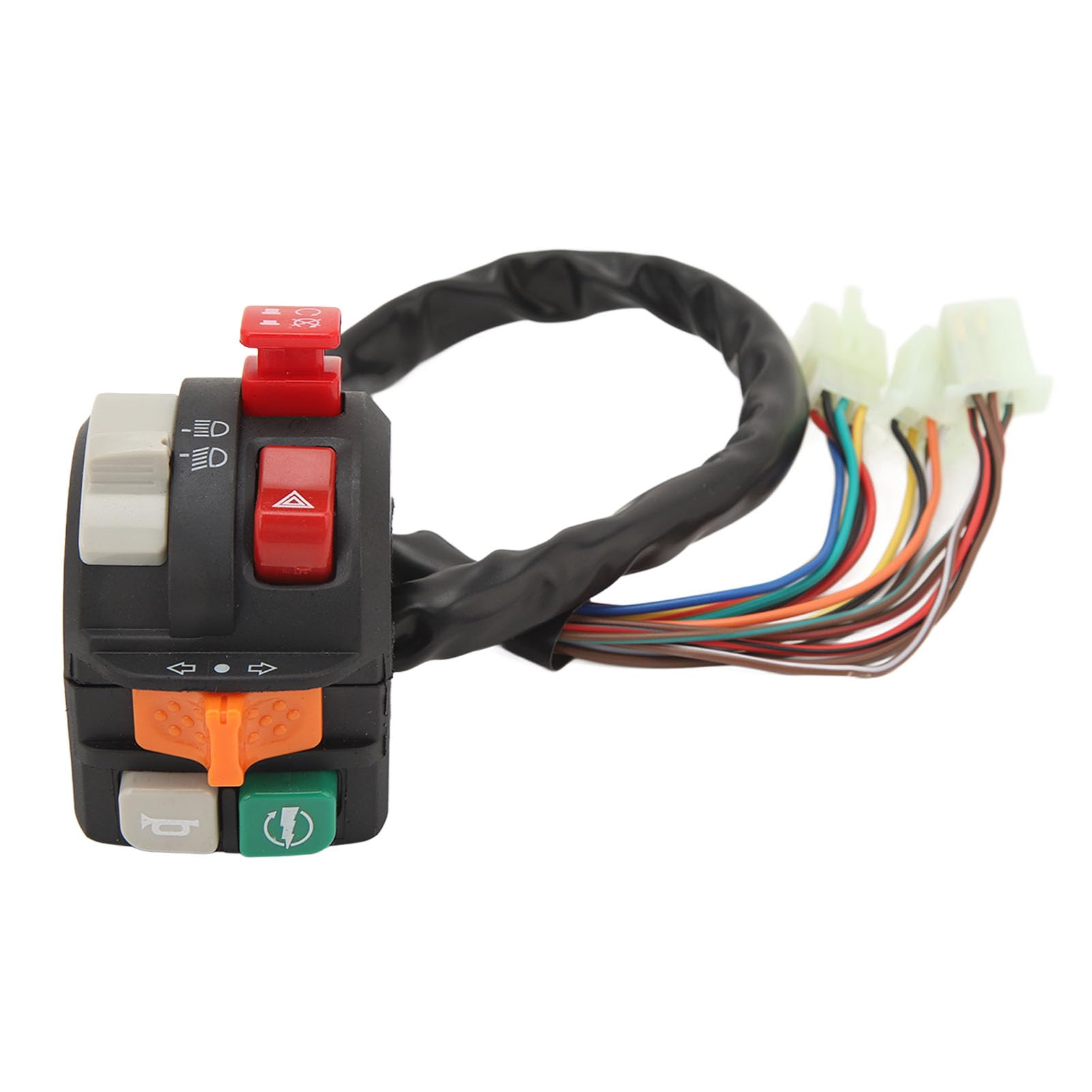 Motorrad- und ATV-Fahrer, dieser universelle Lenkerschalter ist die perfekte Lösung für eure Maschinen! Mit 22mm (7/8 Zoll) Durchmesser passt er an die meisten Lenker und bietet 7 wichtige Funktionen: linke und rechte Blinker, Hupe, Nah- und Fernlicht, Scheinwerfer, Warnlichter und Start/Stopp. Das robuste Kunststoffgehäuse ist wetterfest und hält jedem Wetter stand - ob Regen, Sonne oder Staub. Die Installation ist supereinfach und kann direkt vorgenommen werden. Die Tasten sind sensibel und gut zu bedienen, auch mit Handschuhen. Perfekt für Motorräder, Geländefahrzeuge, ATVs und Elektromotorräder. Egal ob du deinen alten Schalter ersetzten musst oder ein Upgrade suchst - dieser Schalter gibt dir die volle Kontrolle über deine Beleuchtung und Signalfunktionen. Weil Sicherheit im Straßenverkehr an erster Stelle steht und ein gut funktionierender Lenkerschalter einfach dazugehört! Einfach einbauen und wieder sorgenfrei fahren!