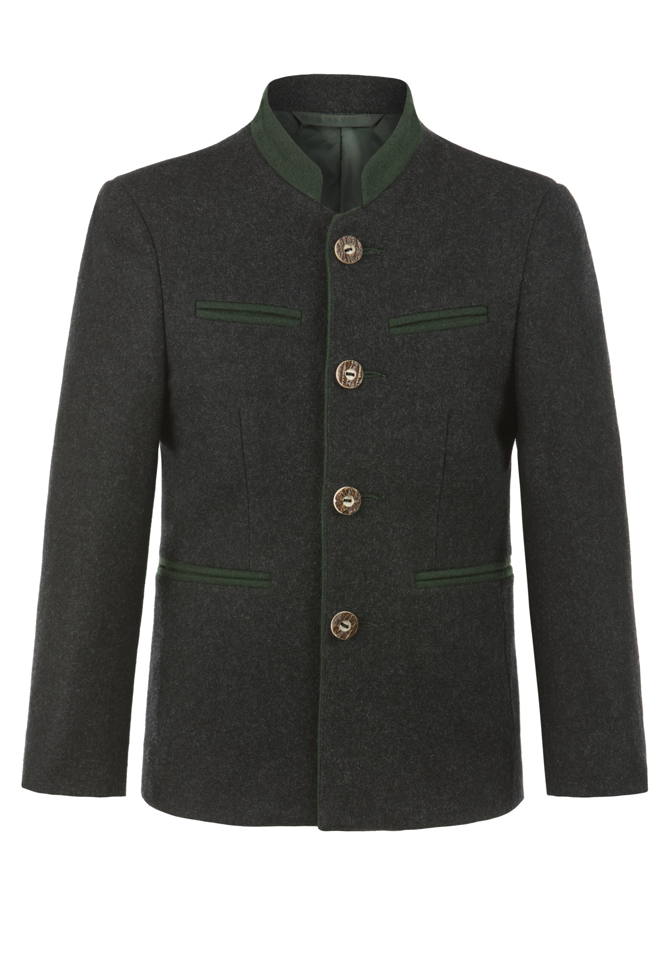Traditionell & stylisch! Die Stockerpoint Lenz Jr. Trachtenjacke in anthrazit bringt bayerisches Flair in die moderne Jugendmode. Aus hochwertigem Melange-Loden (50% Wolle, 25% Polyester, 25% Viskose) gefertigt, ist sie robust und langlebig. Echte Hornknöpfe, grüne Paspelierung am bestickten Stehkragen und die klassische Kellerfalte im Rücken unterstreichen die authentische Optik. Perfekt zur Jeans oder zur Lederhose – für Festtage, Familienfeiern oder den Oktoberfest-Besuch. Ein zeitloses Stück, das Jungen richtig gut stehen lässt!